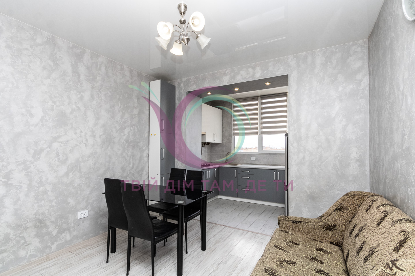 Кухня має дизайнерське рішення у стилі studio, обладнана усіма сучасними приладами та шафами для посуду, а вітальня містить обіній стіл та зручний диван де можна розслабитися після важкого дня.
