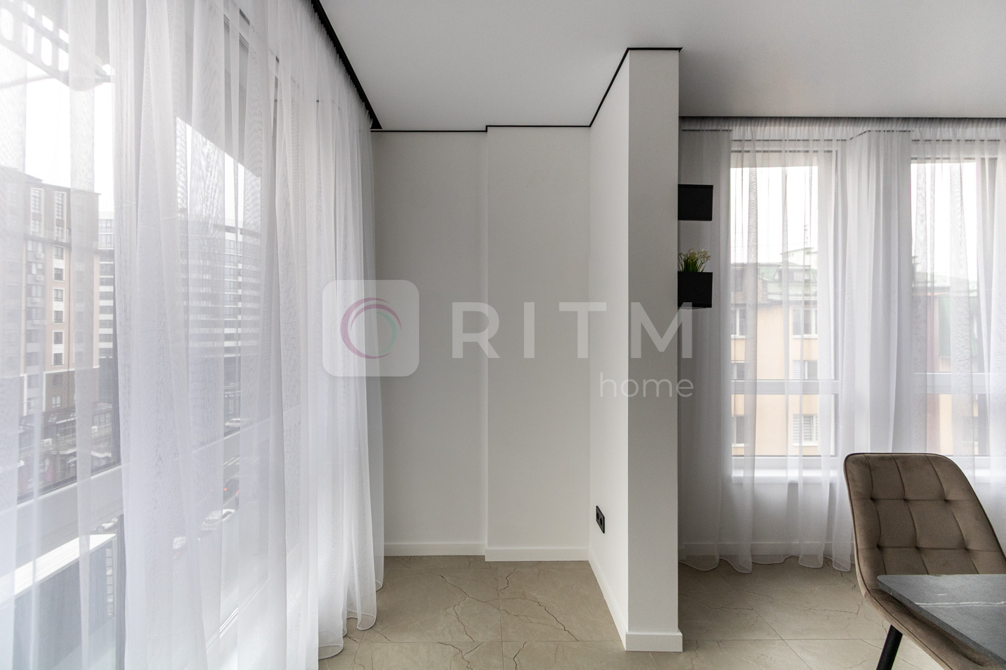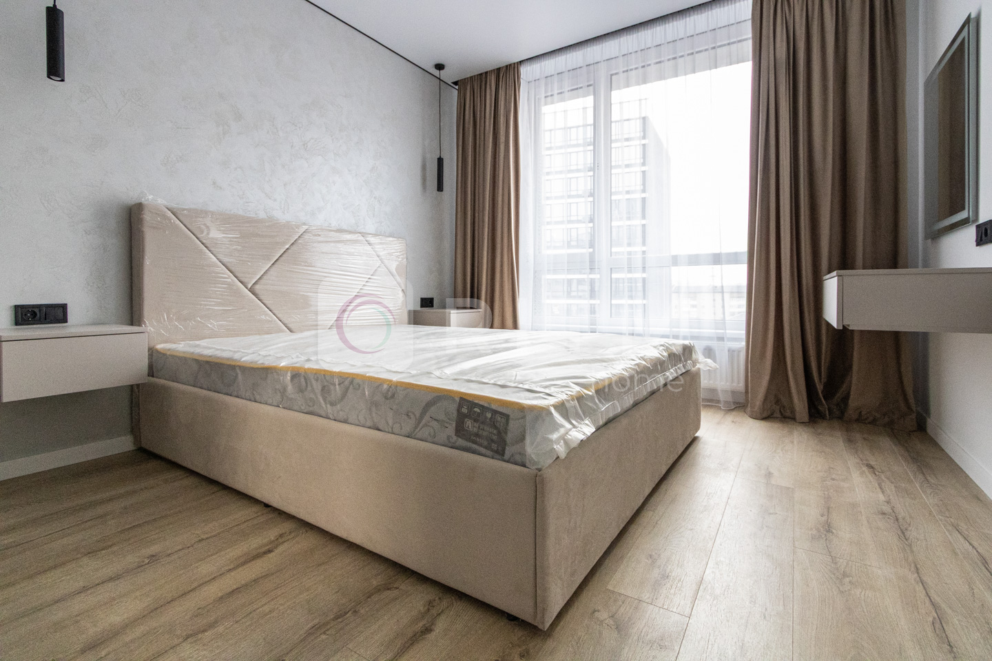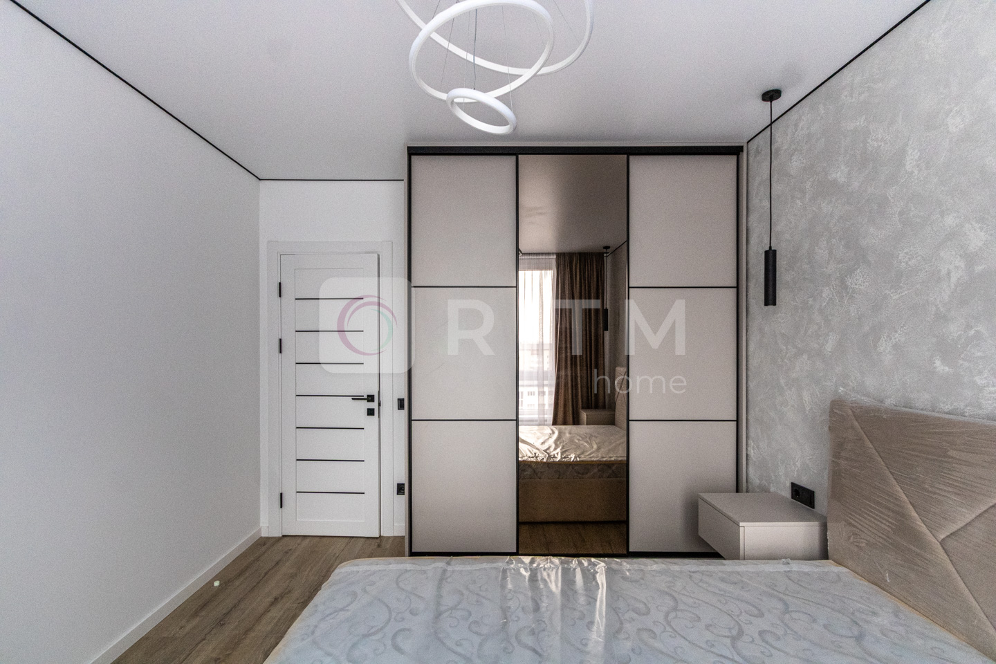 • Окрема спальня зі стильним інтер’єром та великими вікнами.