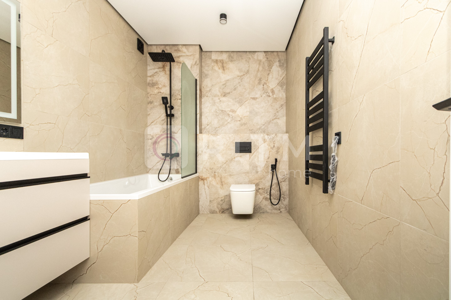 • Сучасна ванна кімната з ванною, душем та преміальними матеріалами.