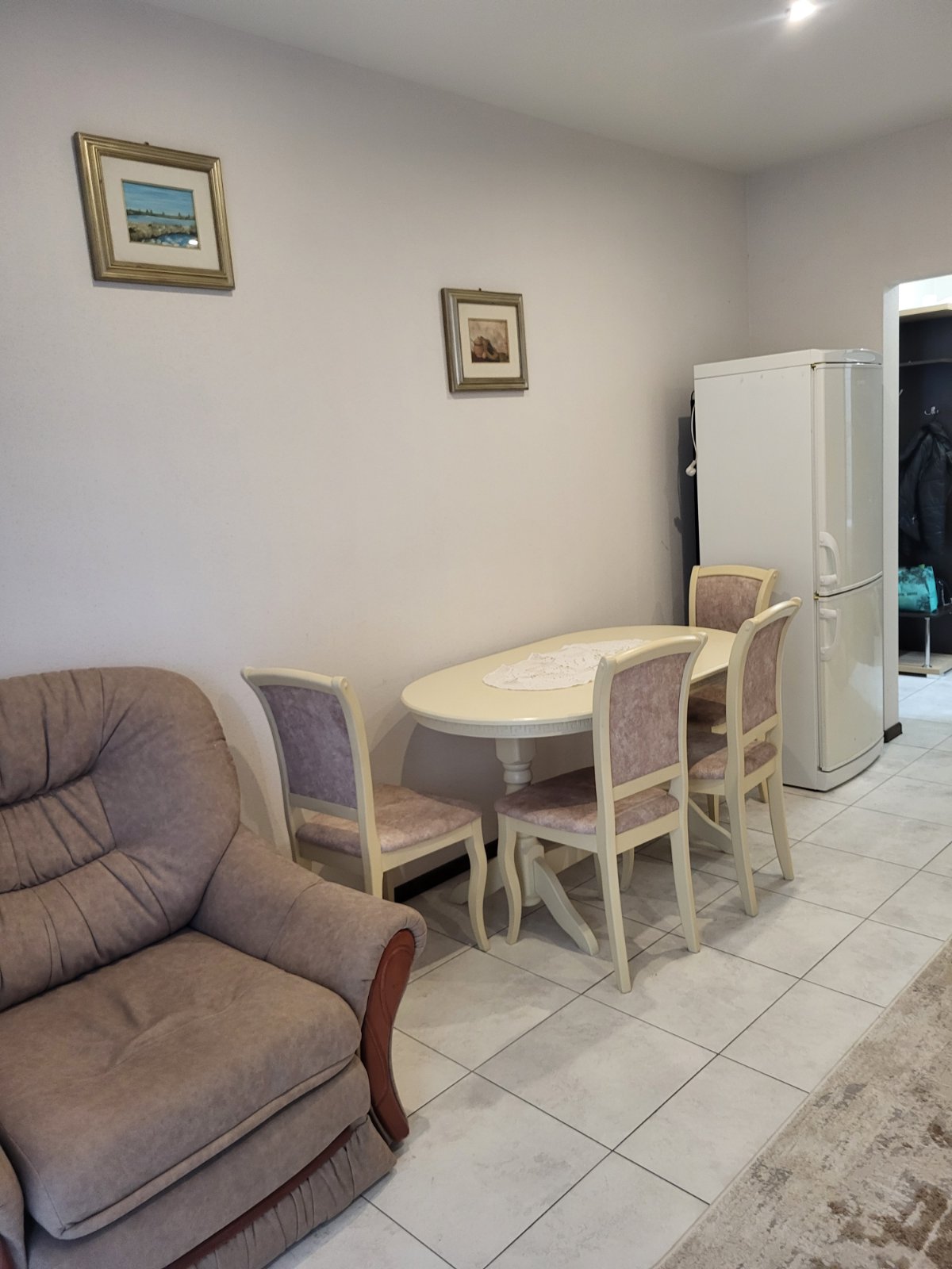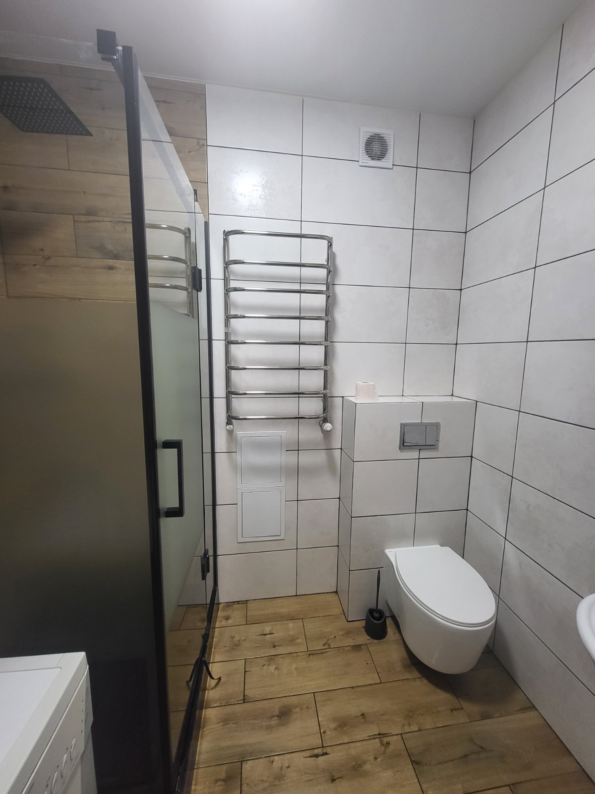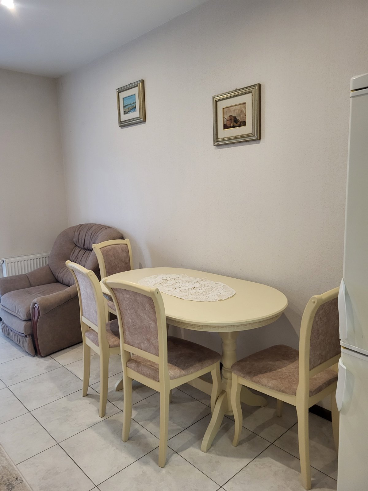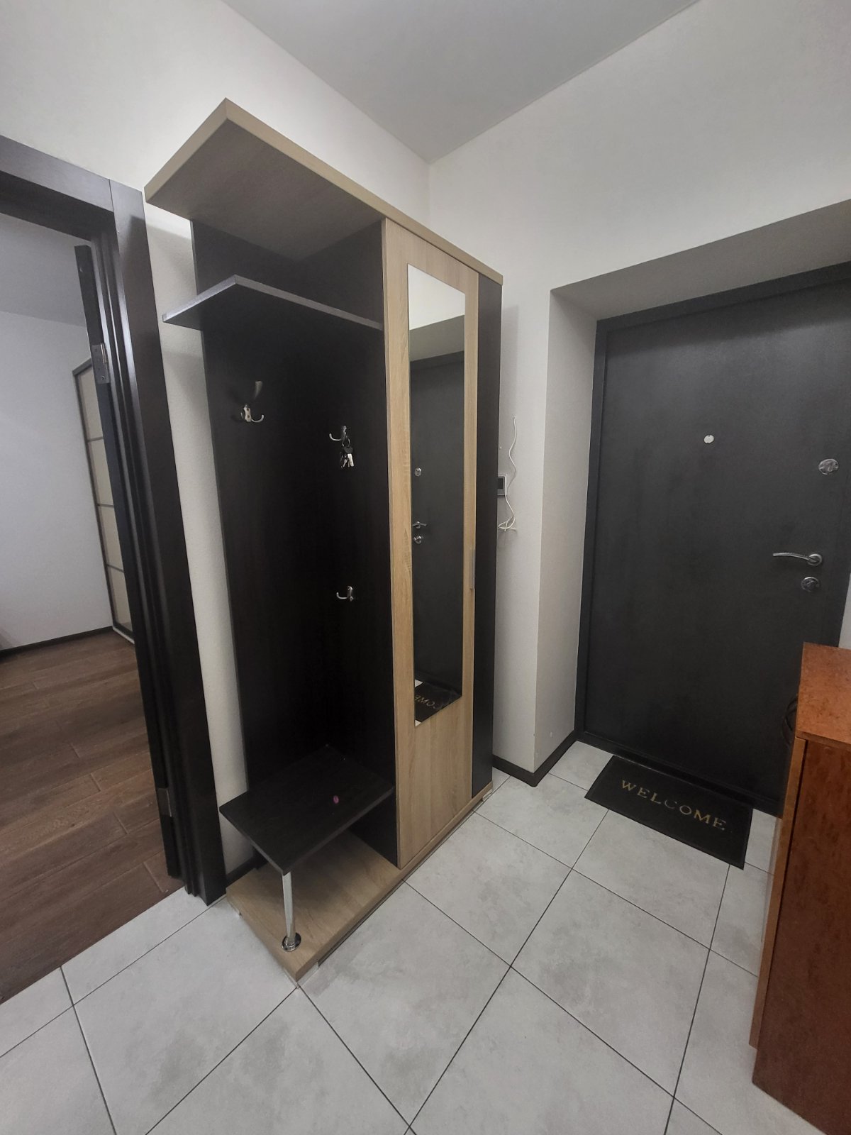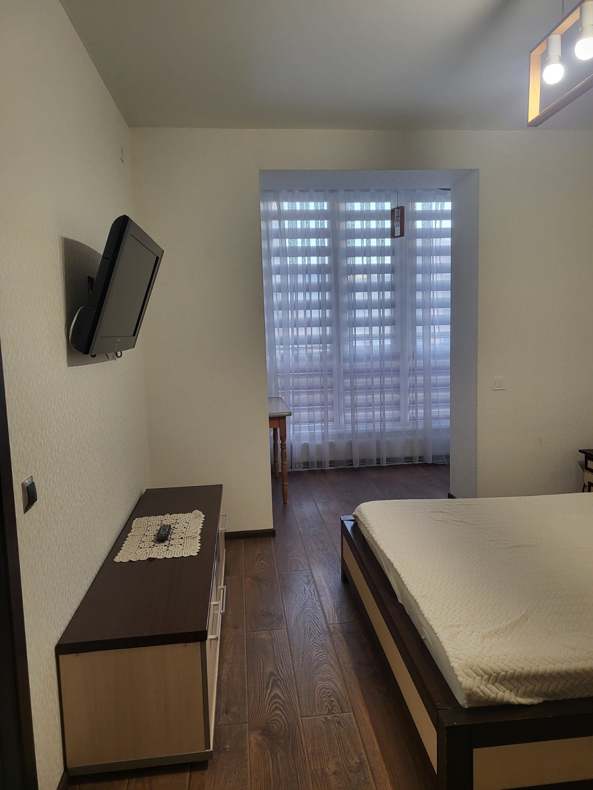 Затишна квартира має свіжий ремонт, надійну побутову техніку, душовою кабіною, меблі та все необхідне для комфортного тривалого проживання. У квартирі мебльована кімната з міжкімнатними дверима та утепленою лоджією, яка збільшує життєвий простір та обладнана комп’ютерним столом. Кухня площею 13 м2 обладнана шафами з посудом, холодильником, витяжною вентиляцією, мікрохвильовою піччю, плитою, духовою шафою, має обідню зону та вихід на відкритий балкон. Санвузол сумісний з ванною кімнатою.