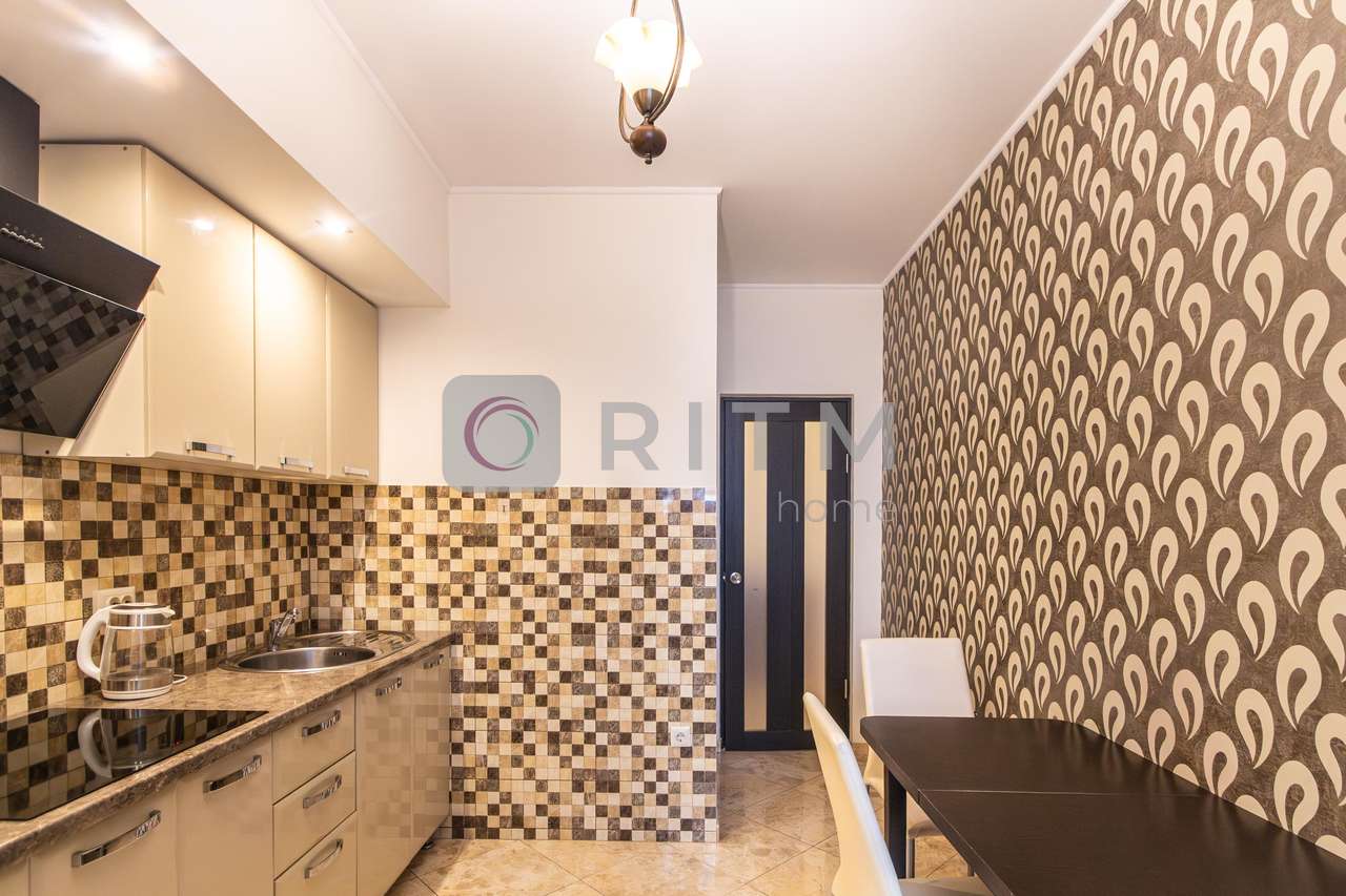 Кухня обладнана шафами для посуду, холодильником, варильною поверхнею, вентиляцією, електрочайником тощо. А також має зручну обідню зону і вхід на засклену лоджію.