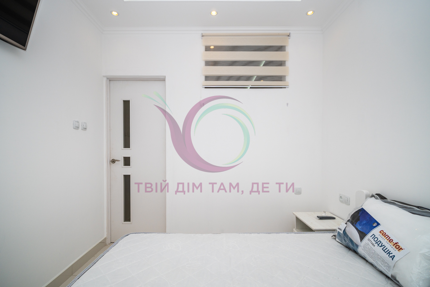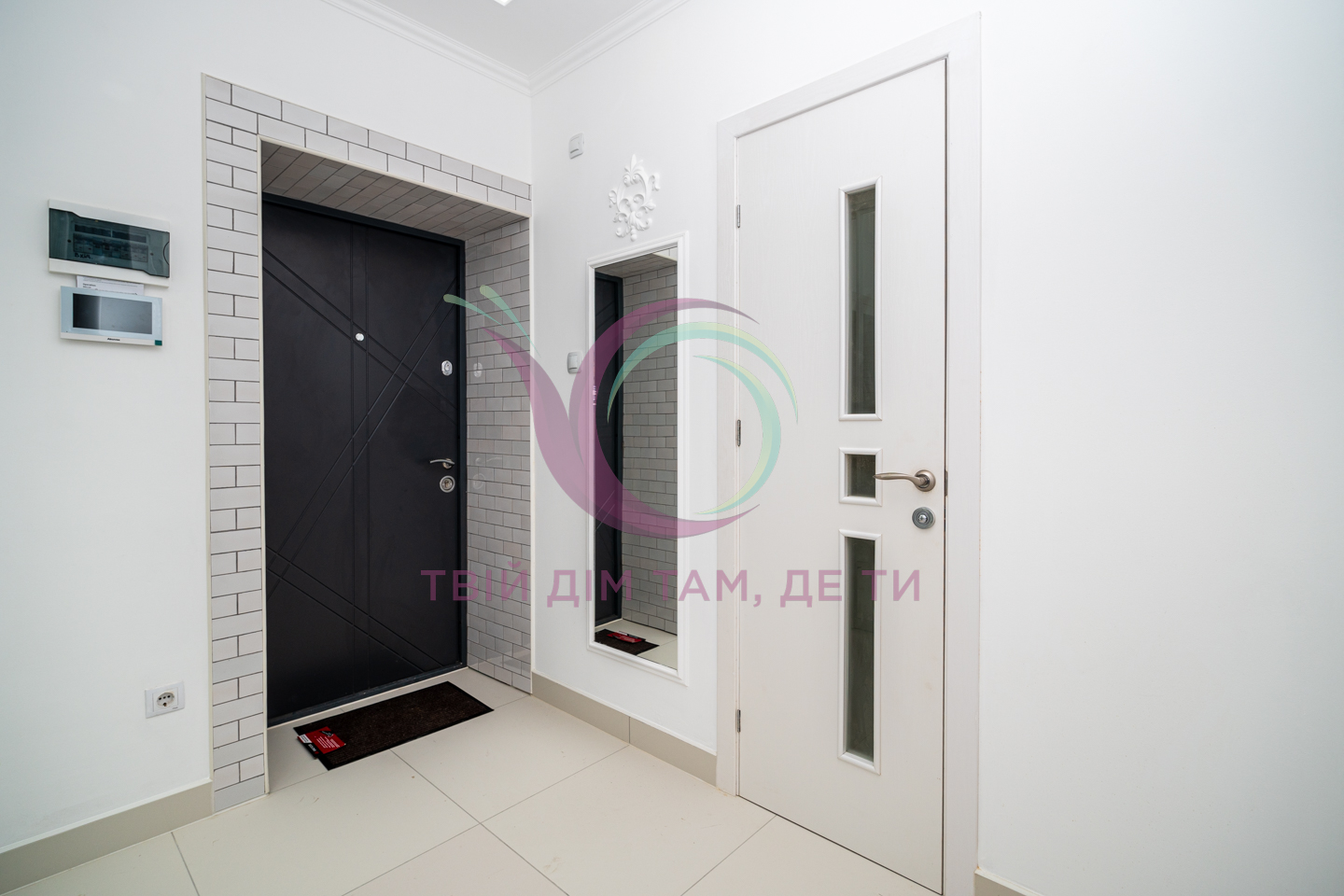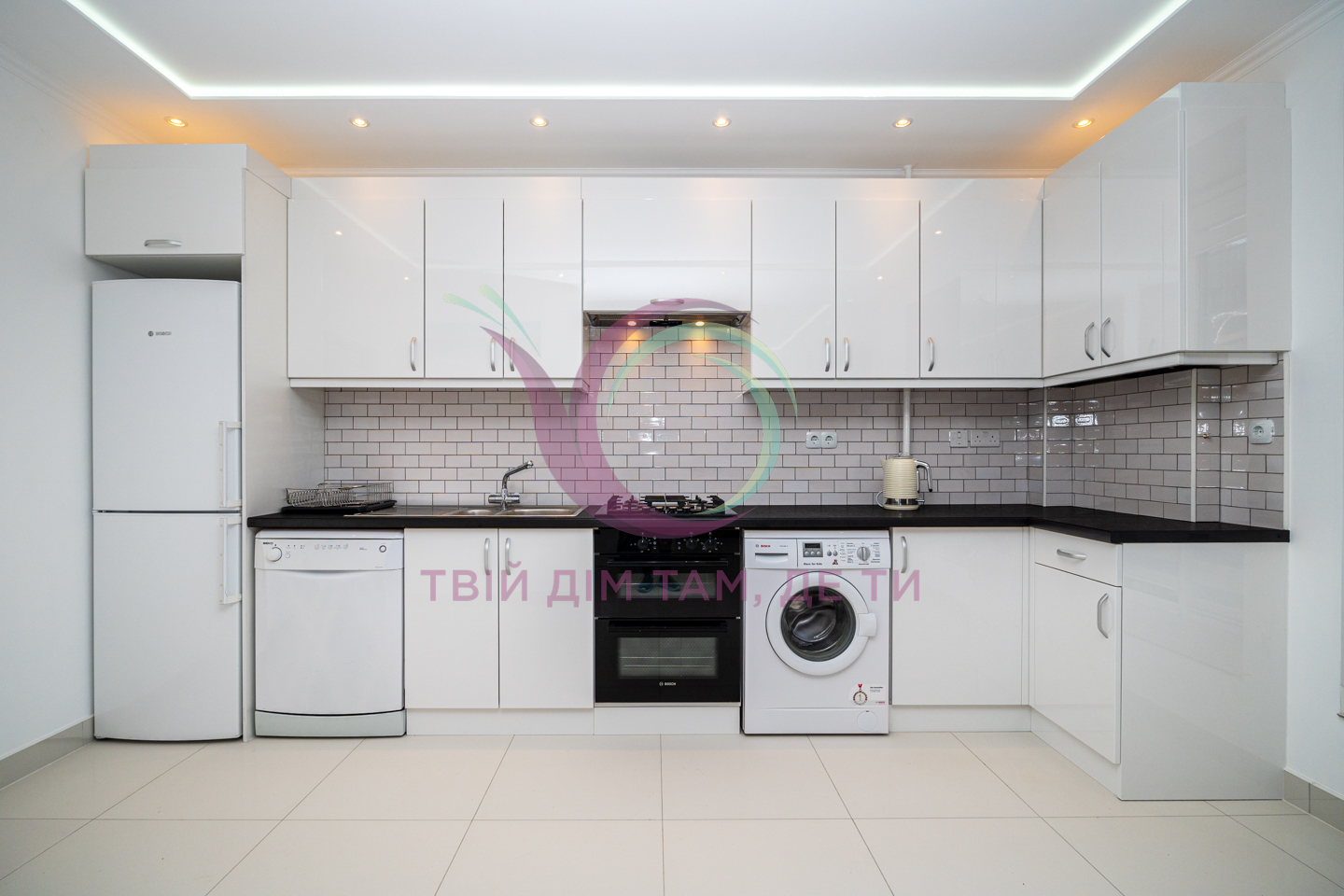 Стильна квартира з якісним ремонтом та сучасним дизайном інтер’єру має окрему спальну кімнату з міжкімнатними дверима та місткою шафою для речей. Кухня-студія площею 10 м2 обладнана шафами для посуду, холодильником, плитою, духовкою, витяжкою, має простору зону вітальні. Санвузол сумісний з ванною кімнатою має якісну сантехніку. Квартира укомплектована надійною побутовою технікою, підігрівом підлоги, індивідуальним опаленням, якісними меблями та усім необхідним для комфортного тривалого проживання.