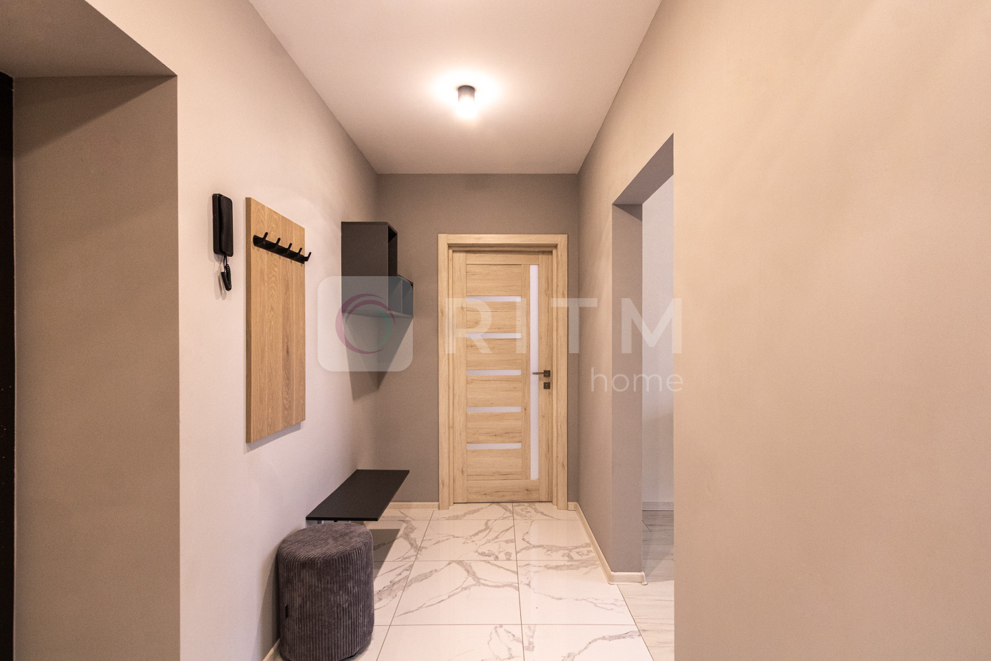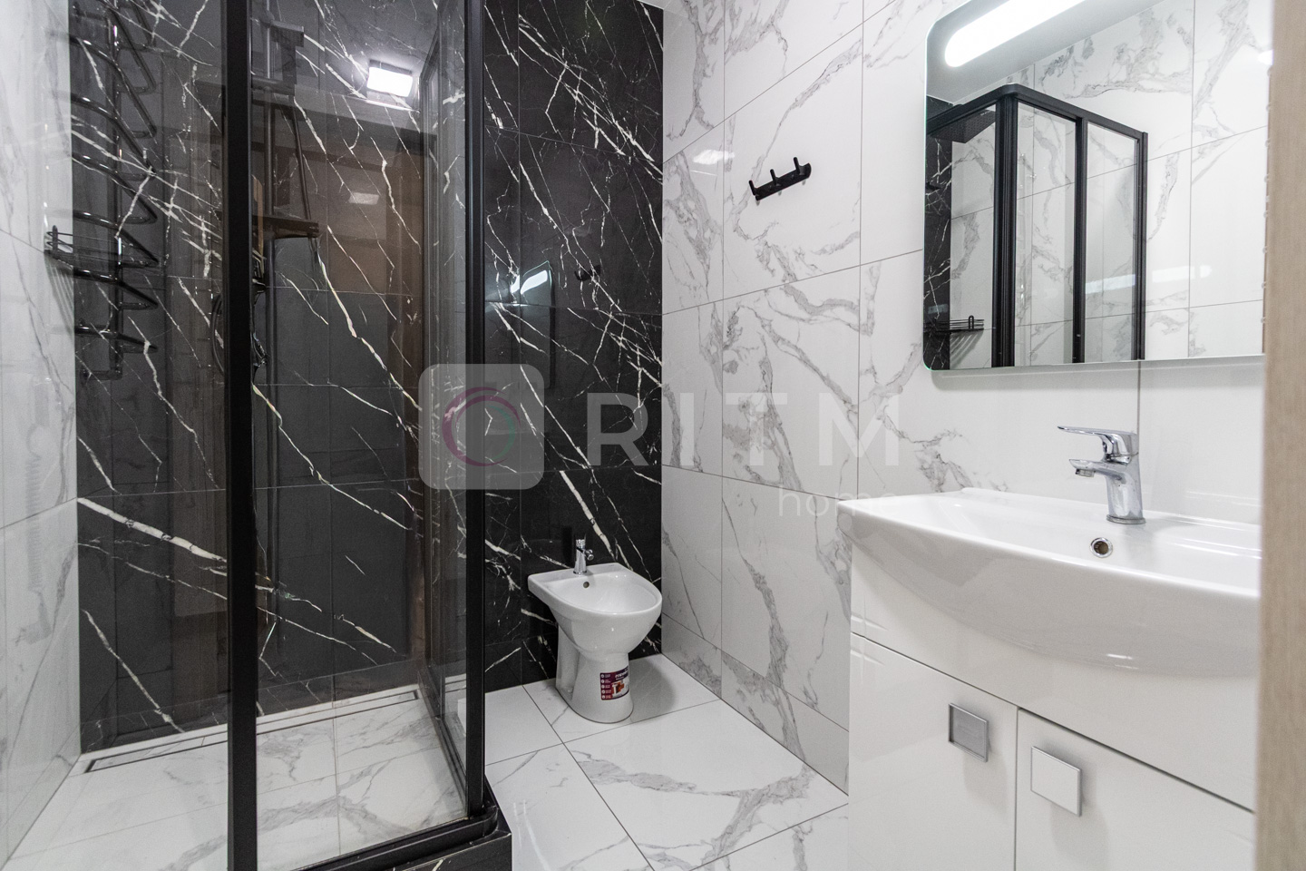 У квартирі є просторий коридор із шафою-купе, санвузол із сучасним душем, а також пральна машинка.