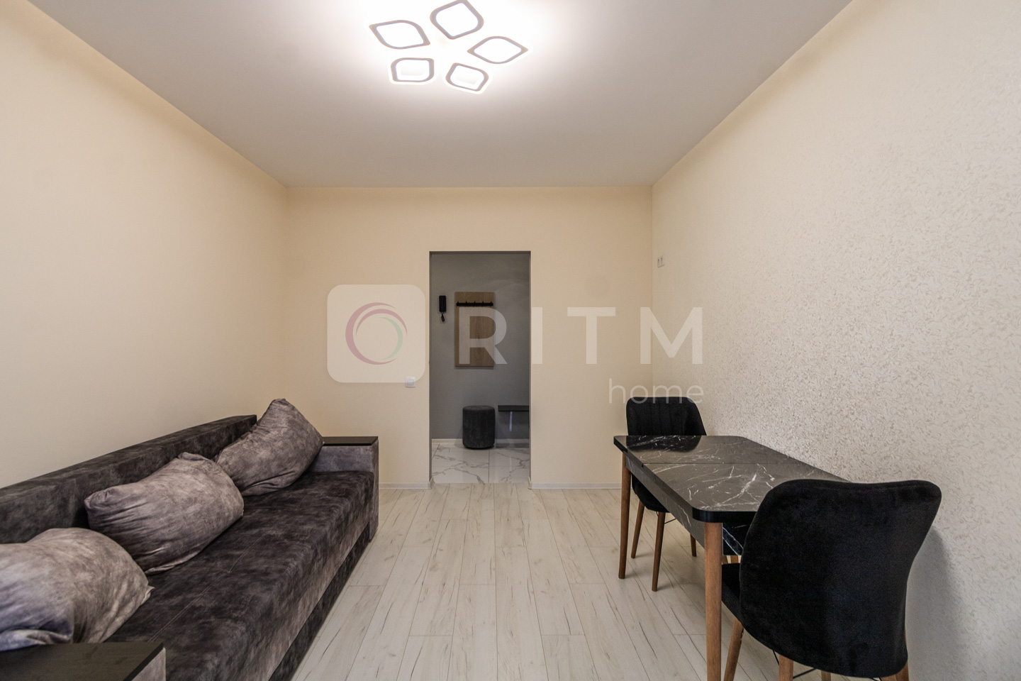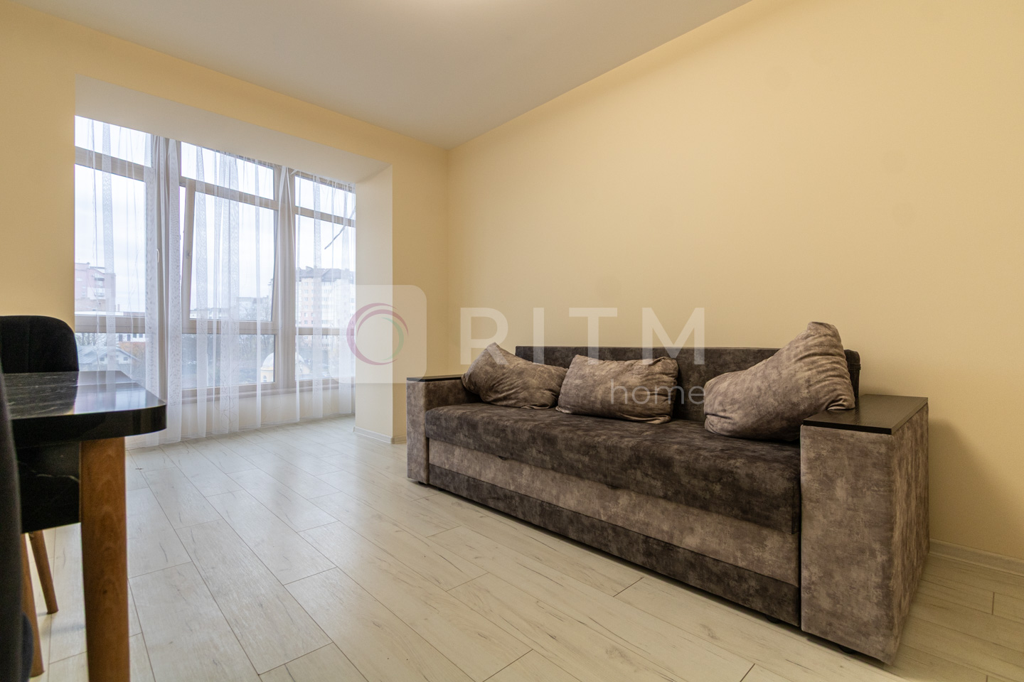 У другій кімнаті — комфортний диван, який може використовуватися як додаткове спальне місце або зона відпочинку.