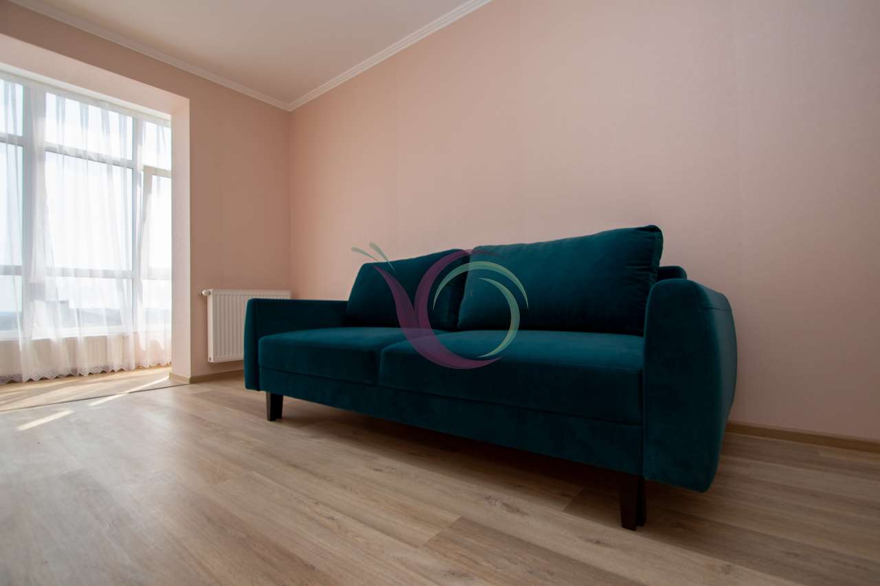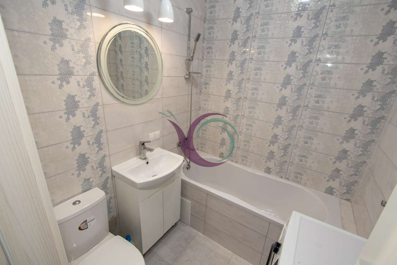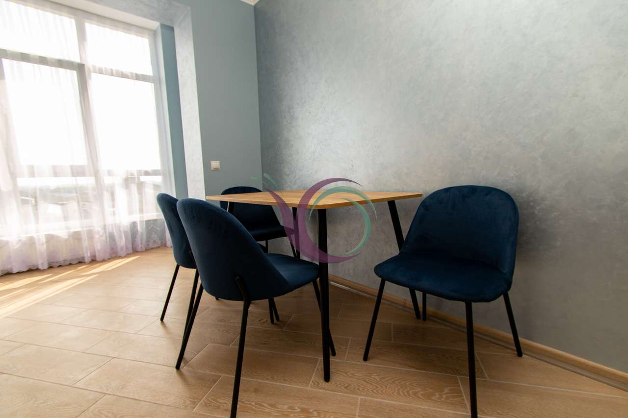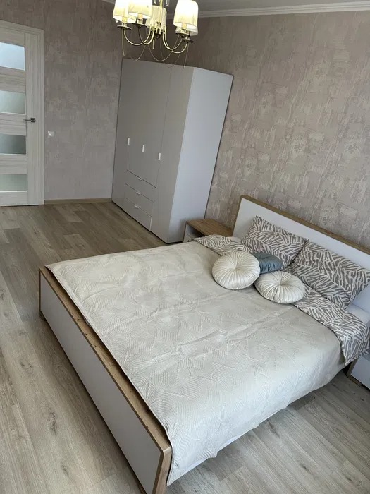 Спальна кімната з широким ліжком та новим ортопедичним матрацом, в іншій кімнаті є диван. Кухня з панорамними вікнами, є шафи для посуду, кухонна техніка та стіл зі стільцями. Санвузол з ванною та пральною машиною. Індивідуальне опалення заощадить кошти в холодний період.