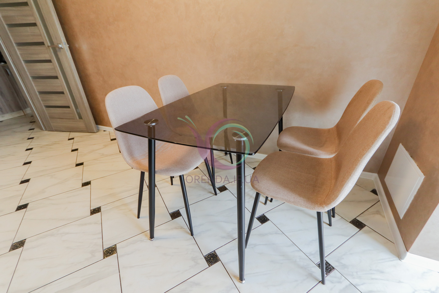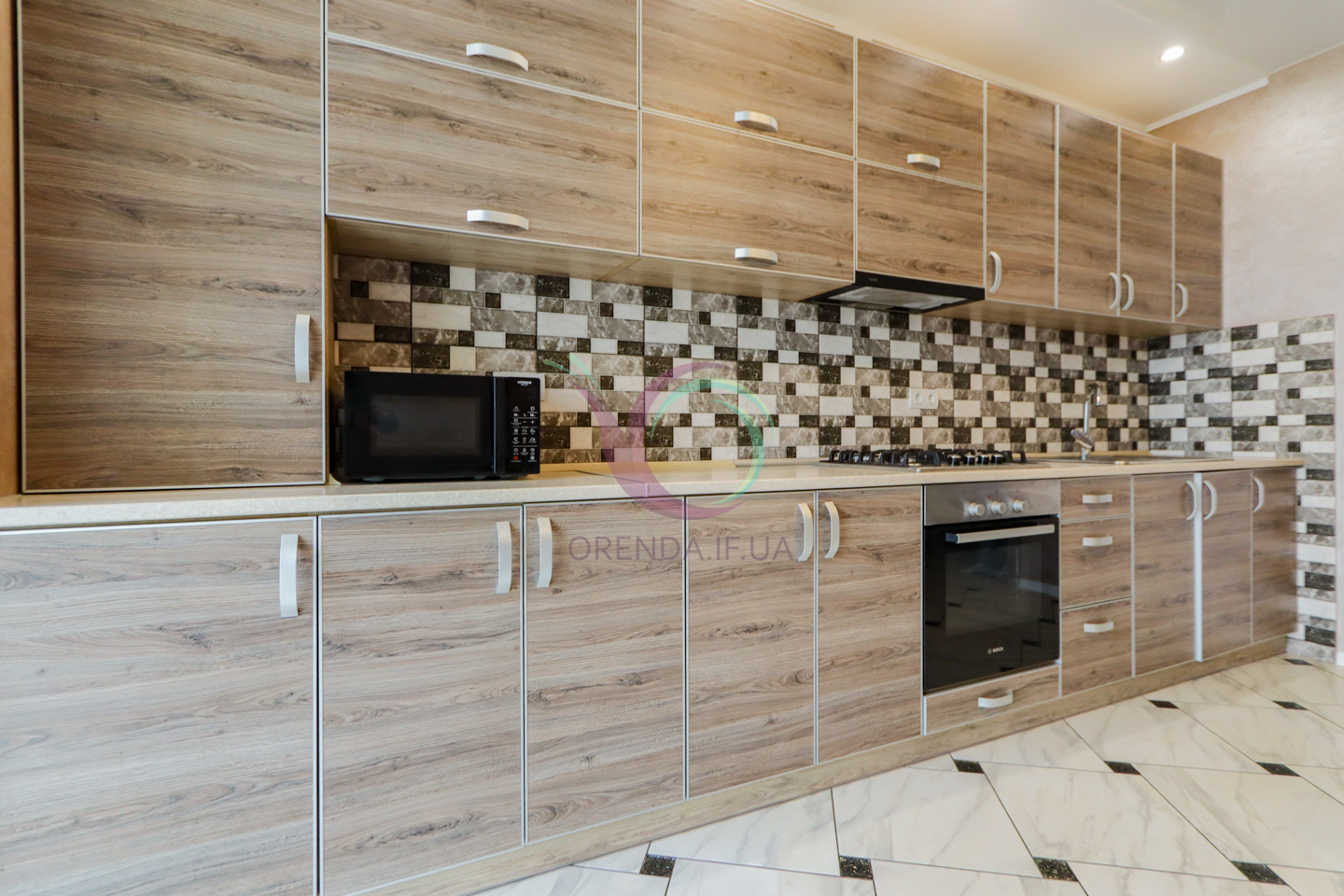 Кухня обладнана шафами для посуду та необхідною побутовою технікою – холодильник, плита, духовка, мікрохвильова піч, витяжна вентиляція тощо. А також має зручну обідню зону.