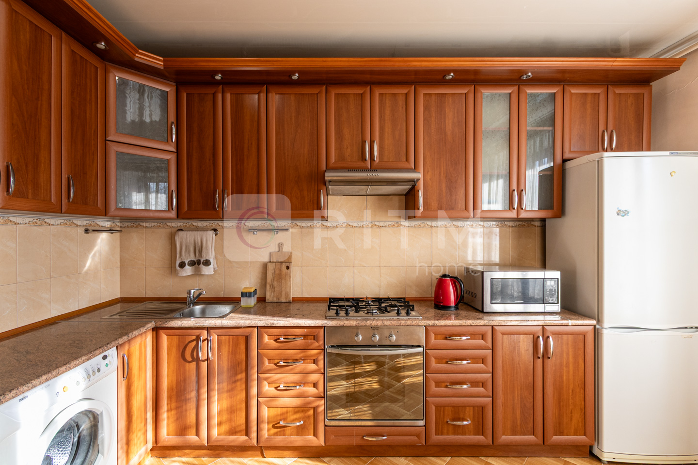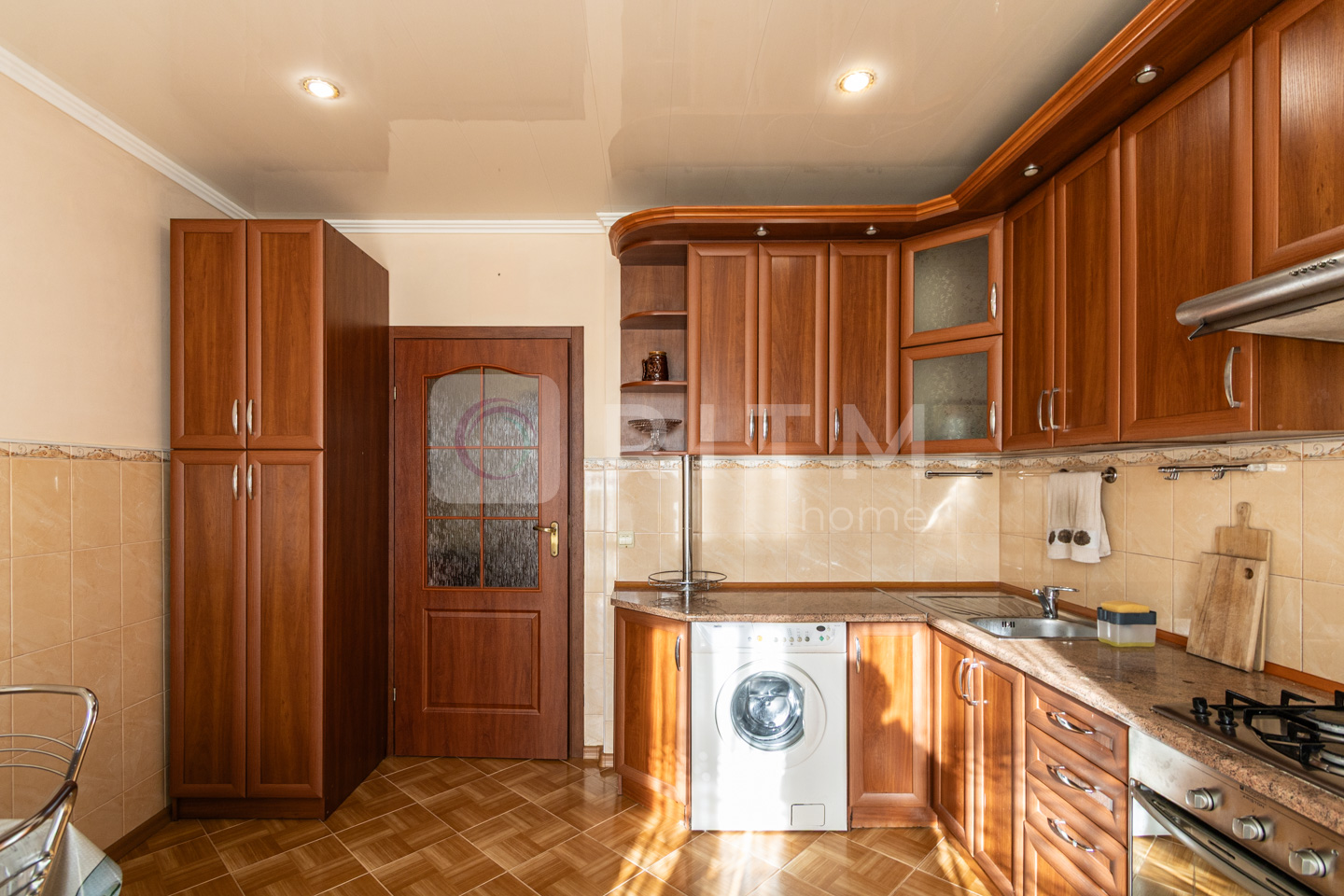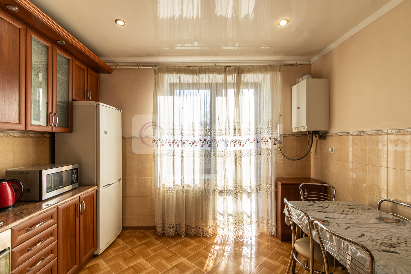 На кухні все від холодильника до мікрохвильовки (навіть пральна машинка) - для того щоб Вам було приємно готувати сніданки та обіди. Там і обідній стіл зі стільцями.