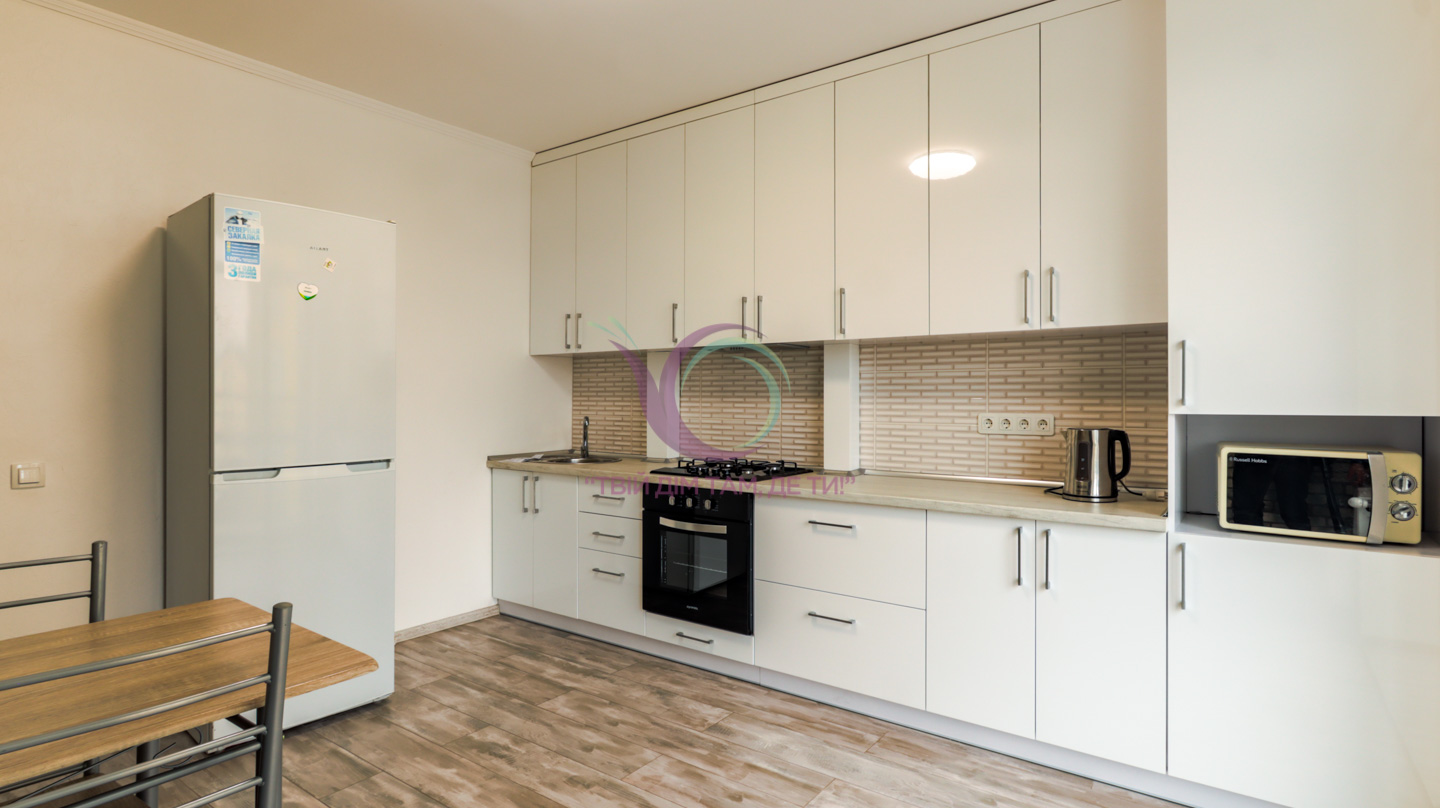 Кухня має шафи для посуду, холодильник, плиту, духовку, мікрохвильову піч, посудомийну машину, витяжну вентиляцію тощо. А також зручну обідню зону.