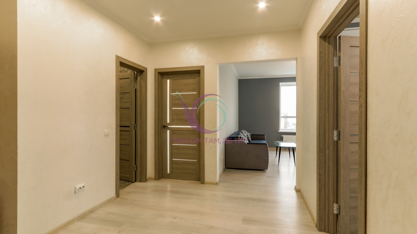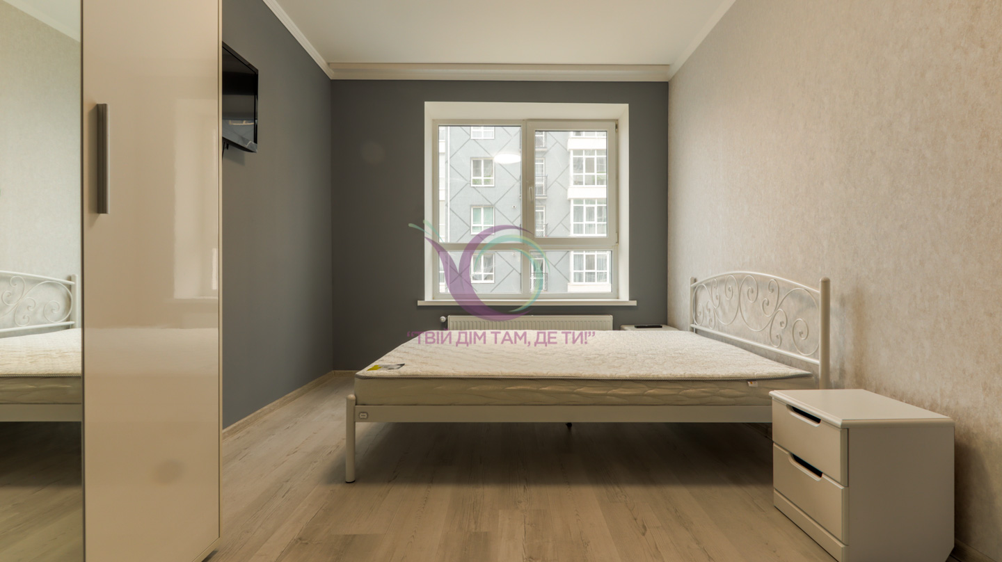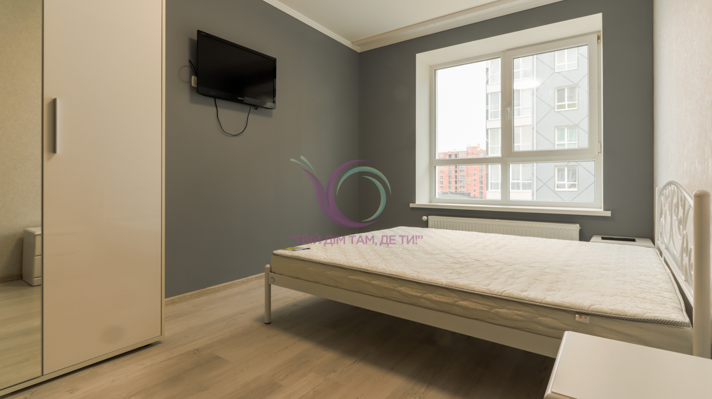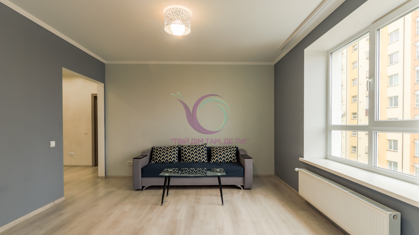 Затишна квартира з якісним ремонтом та приємним дизайном інтер’єру має окрему спальну кімнату з міжкімнатними дверима, вітальню, кухню площею 16 м2з виходом на відкритий балкон, сумісний санвузол з ванною та якісною сантехнікою. Квартира укомплектована побутовою технікою, меблями та усім необхідним для комфортного тривалого проживання.
