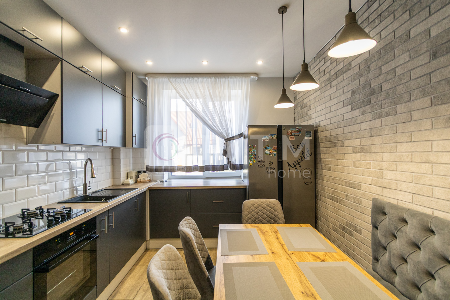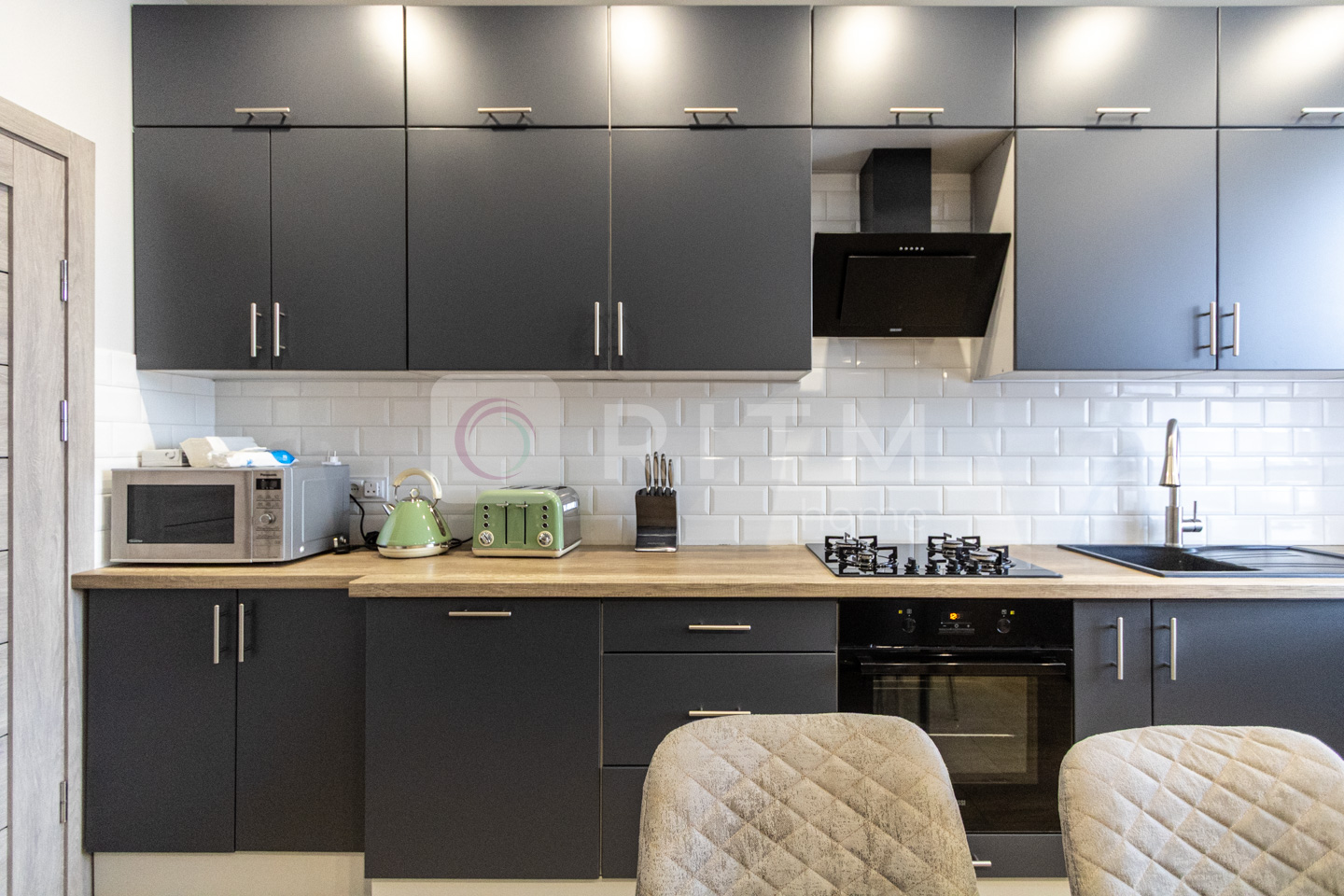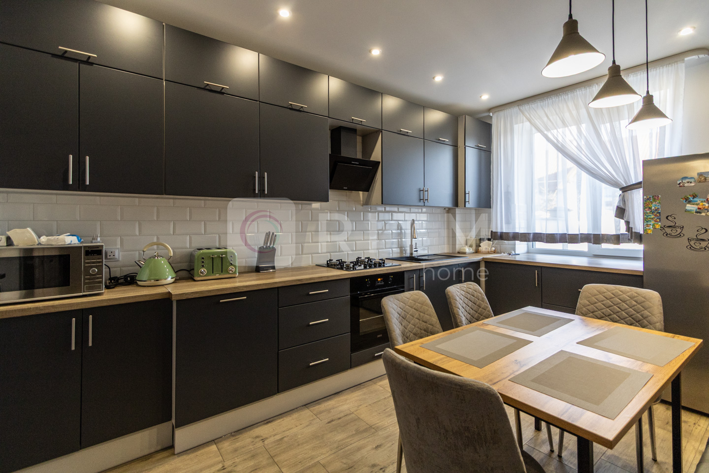 Затишний будинок має функціональне планування: окремі кімнати з виходом на балкон, мебльовані двоспальним ліжком, простора кухня, вітальня з виходом на терасу. 2 санвузли з якісною сантехнікою та ванною. Кухня обладнана шафами для посуду, витяжною вентиляцією, газовою варильною панеллю, холодильником, духовою шафою. Будинок укомплектований усім необхідним для комфортного тривалого проживання.