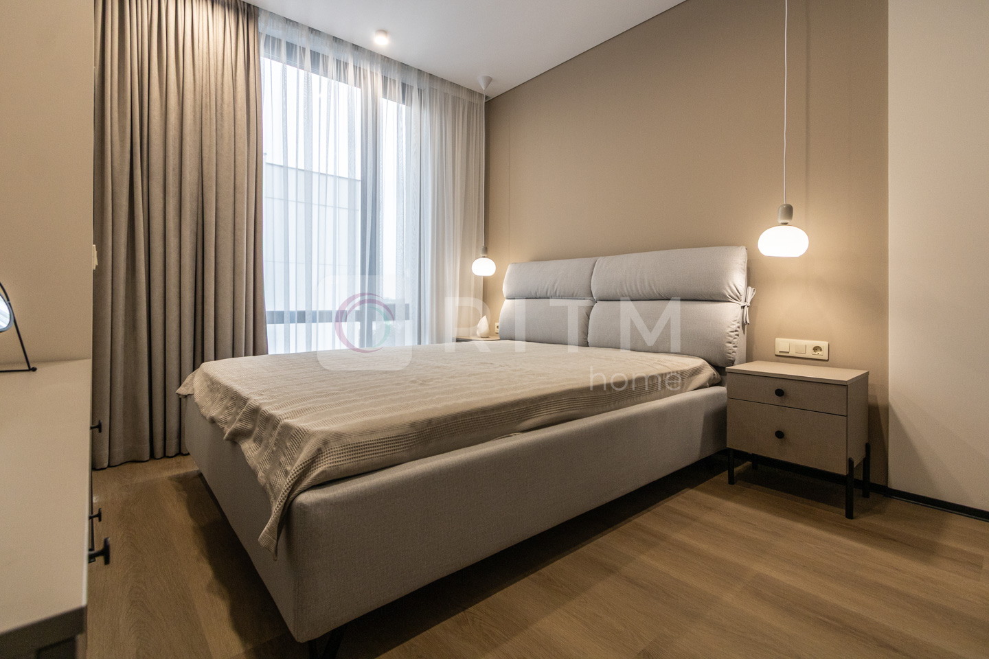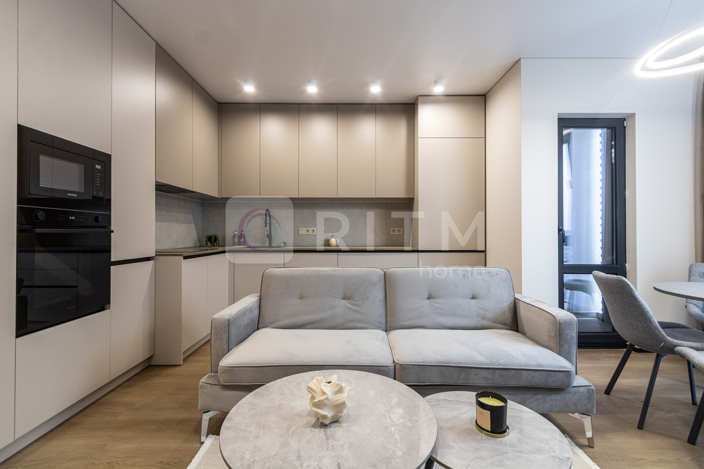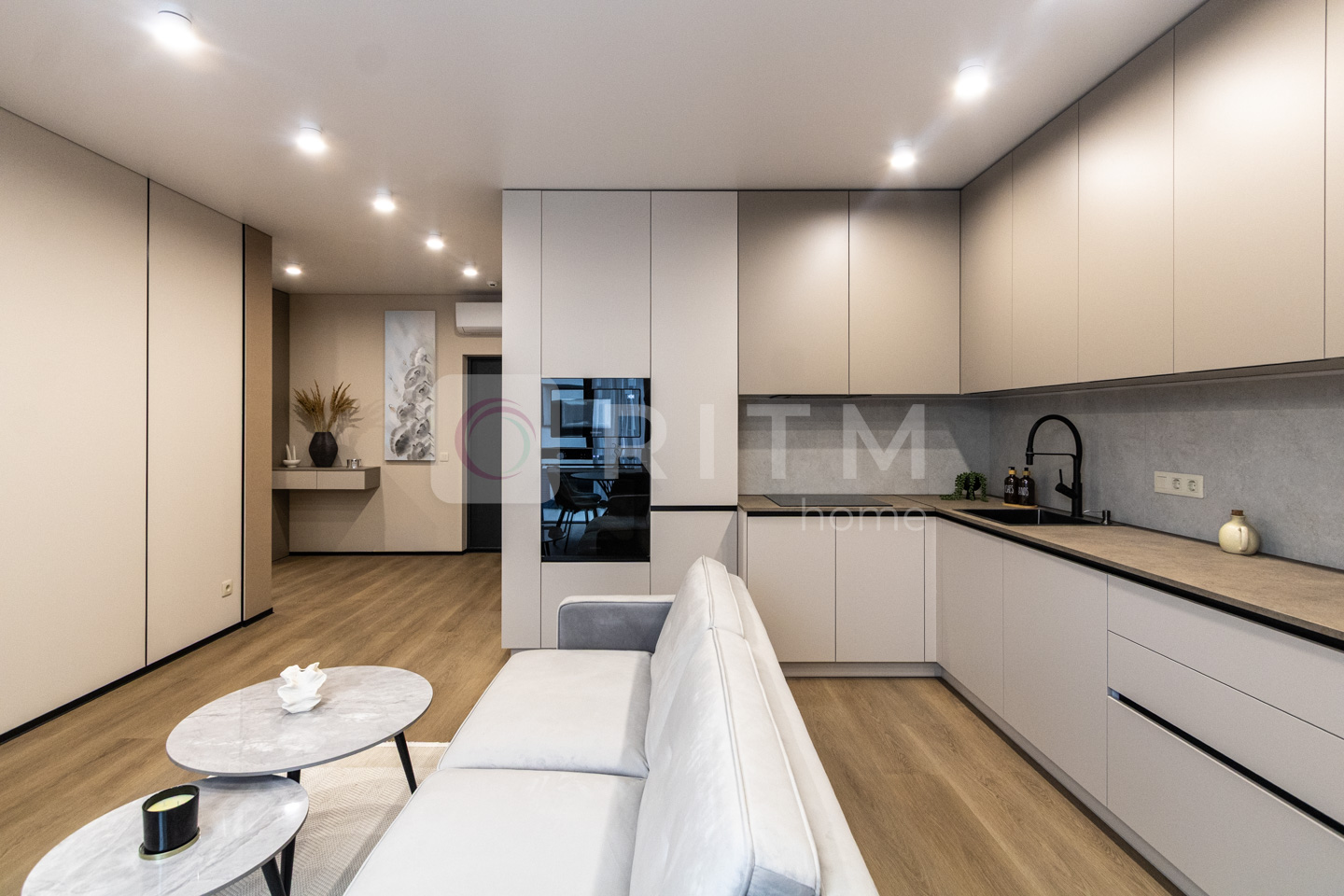 Квартира виконана у сучасному дизайнерському стилі, продумана до найменших деталей, з якісними меблями та технікою.