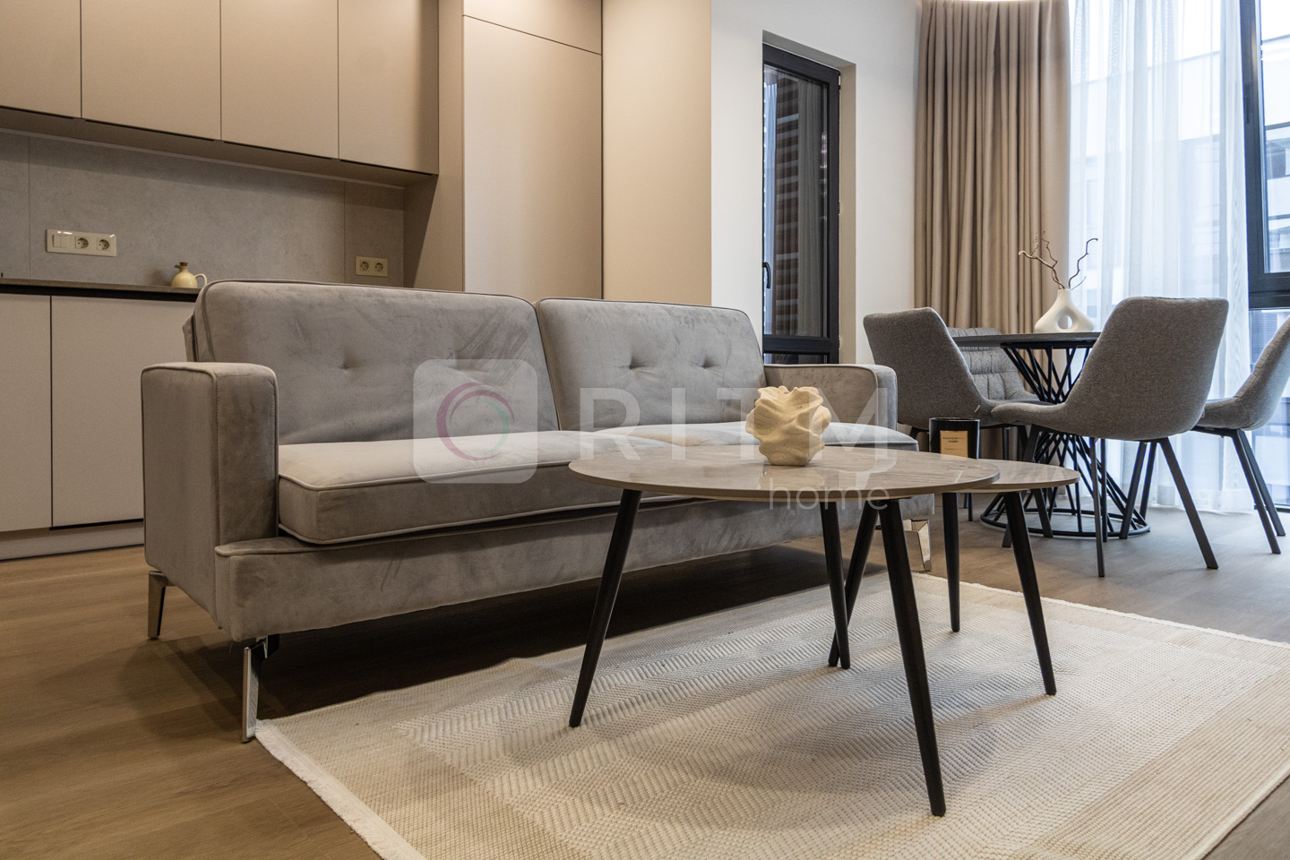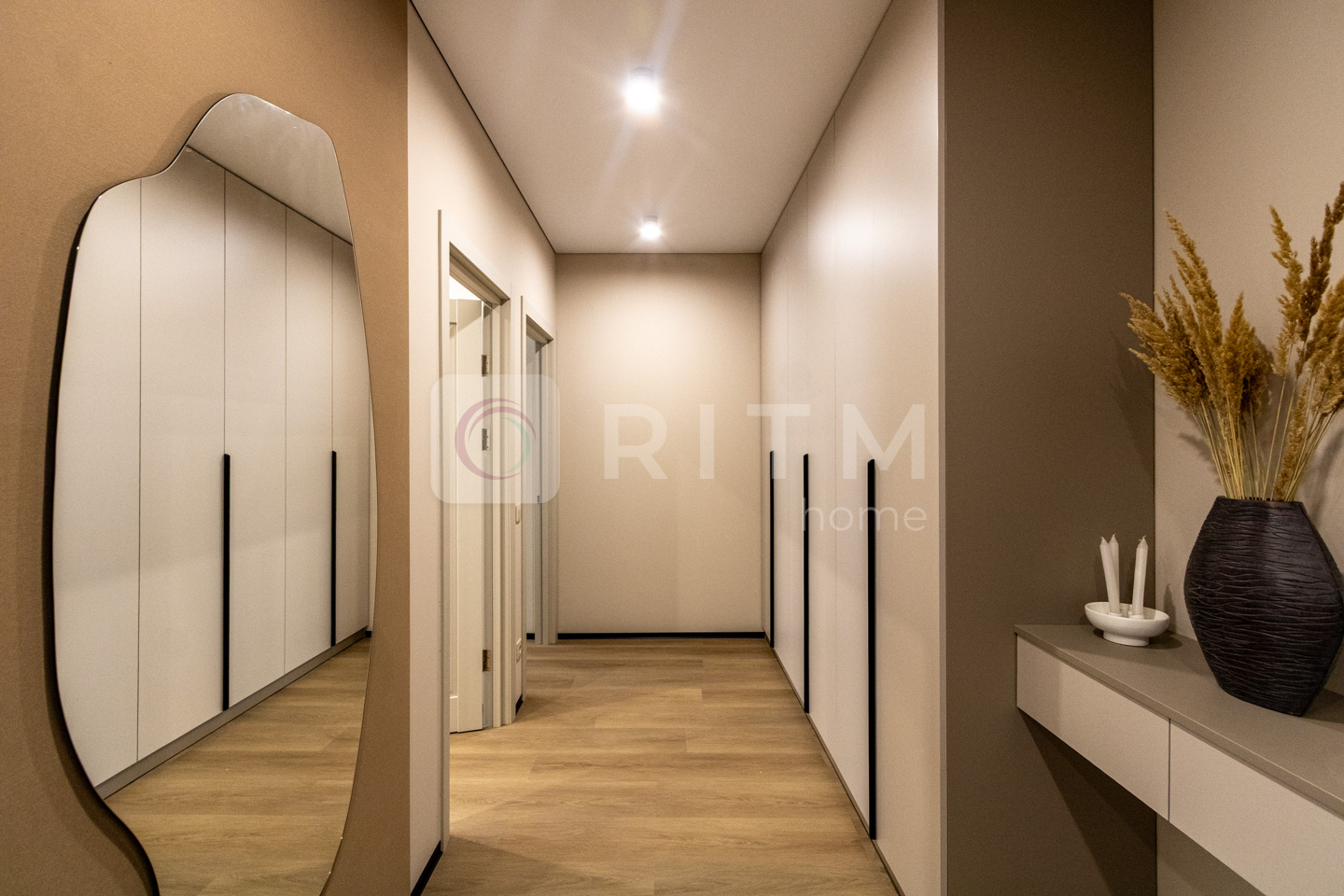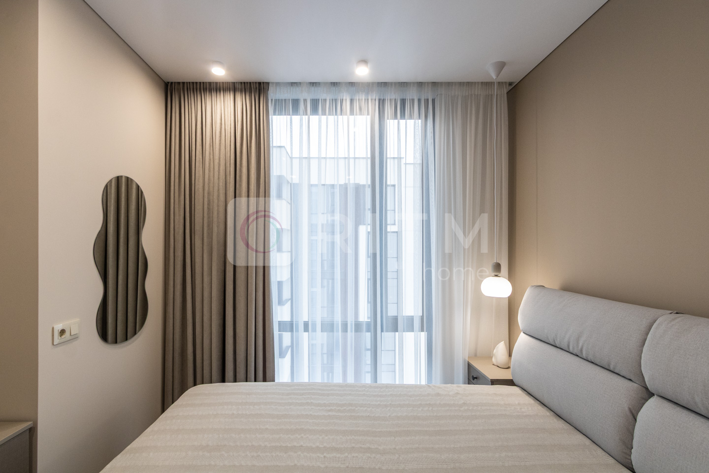 Квартира виконана у сучасному дизайнерському стилі, продумана до найменших деталей, з якісними меблями та технікою.