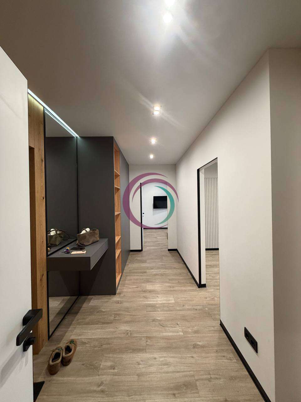• Великий, світлий коридор з додатковими шафами, дзеркалами та продуманим LED-підсвічуванням.