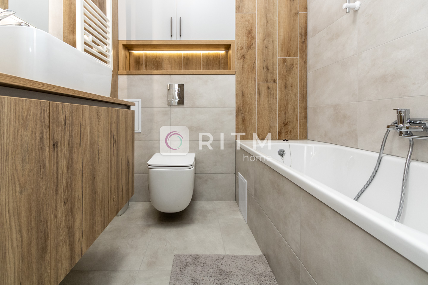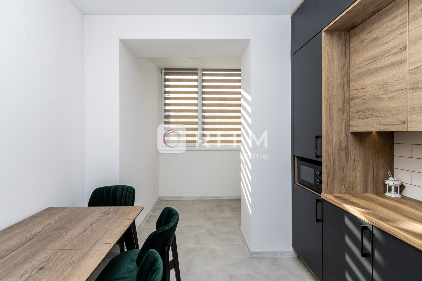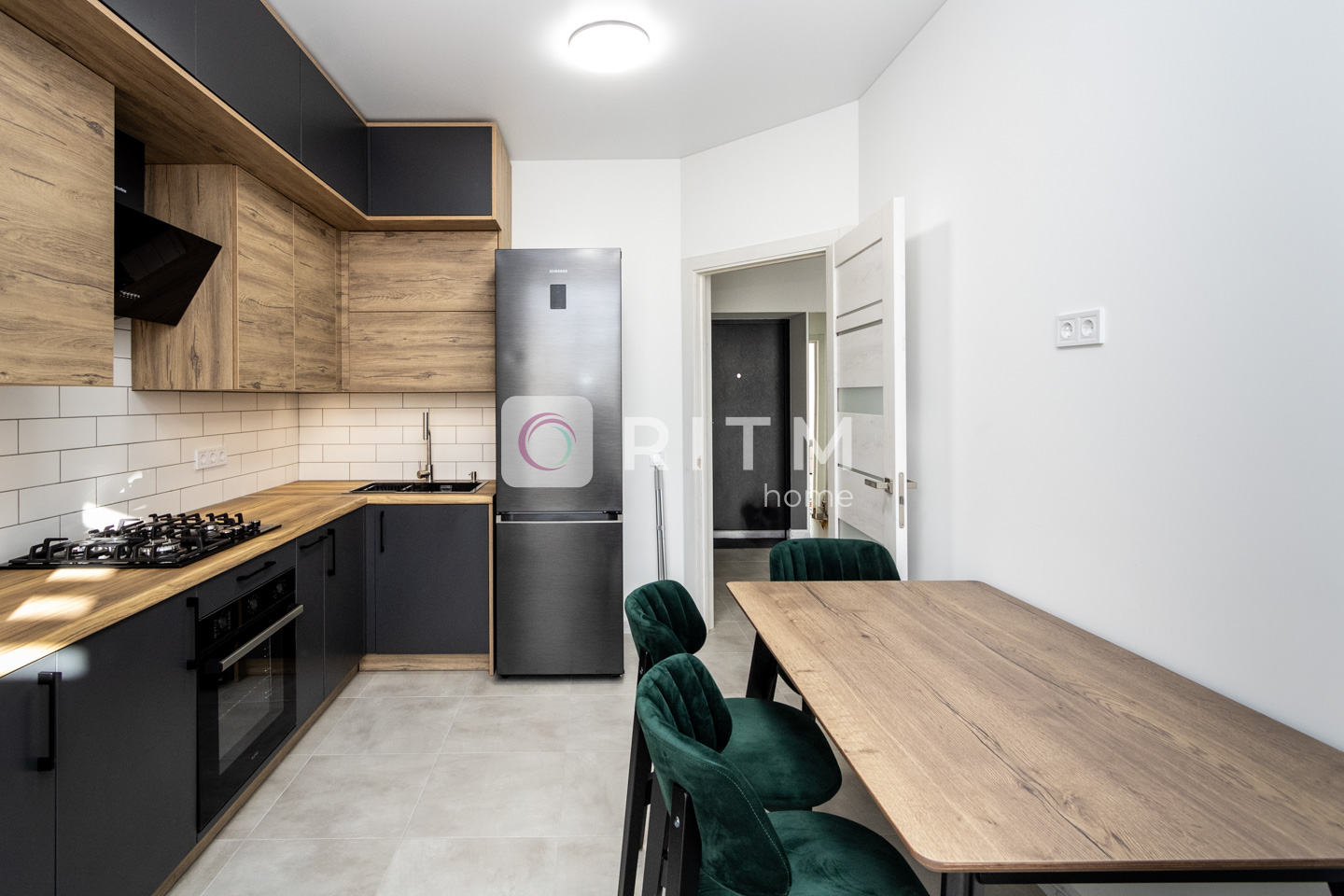 Комфортна квартира в самому центрі міста з просторою кухнею що містить шафи для зберігання посуду та побутову техніку (варильна панель, духова шафа, холодильк), що допоможуть у приготуванні та підтримуванні чистоти. Поряд зручний обідній стіл. Ванна кімната має необхідну сантехніку та пральну машину.