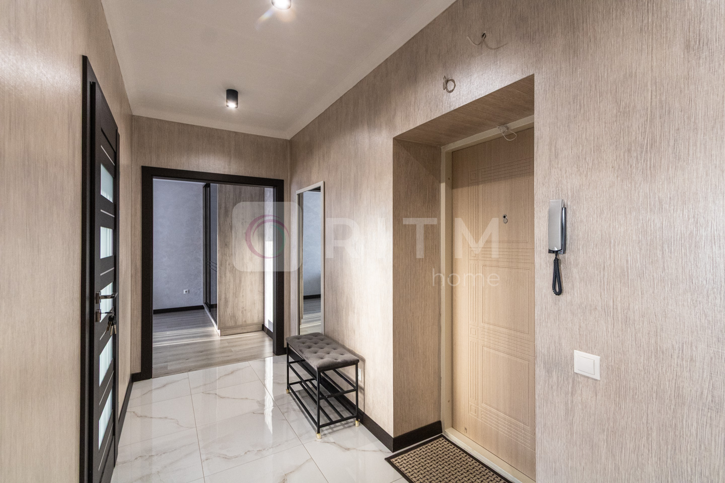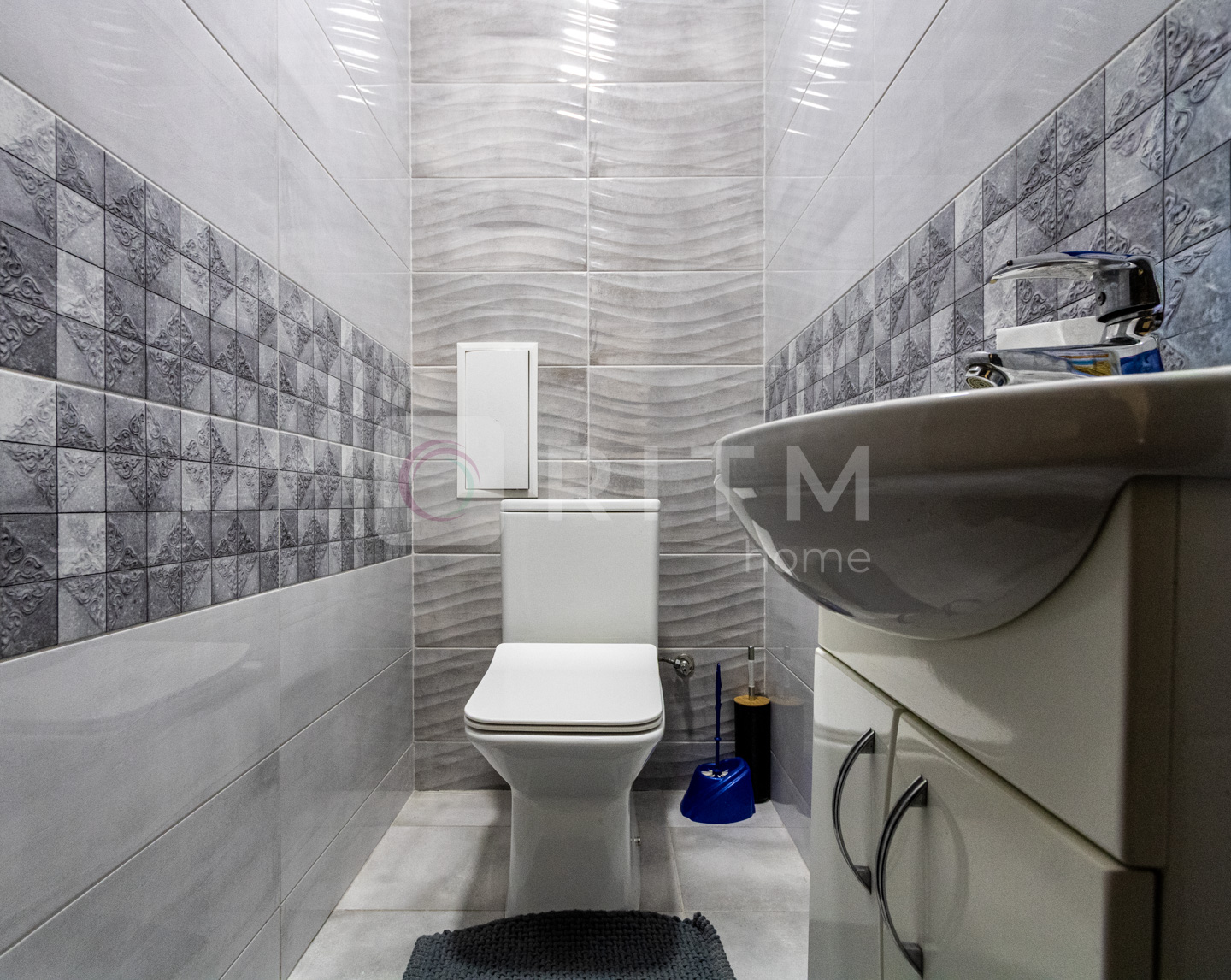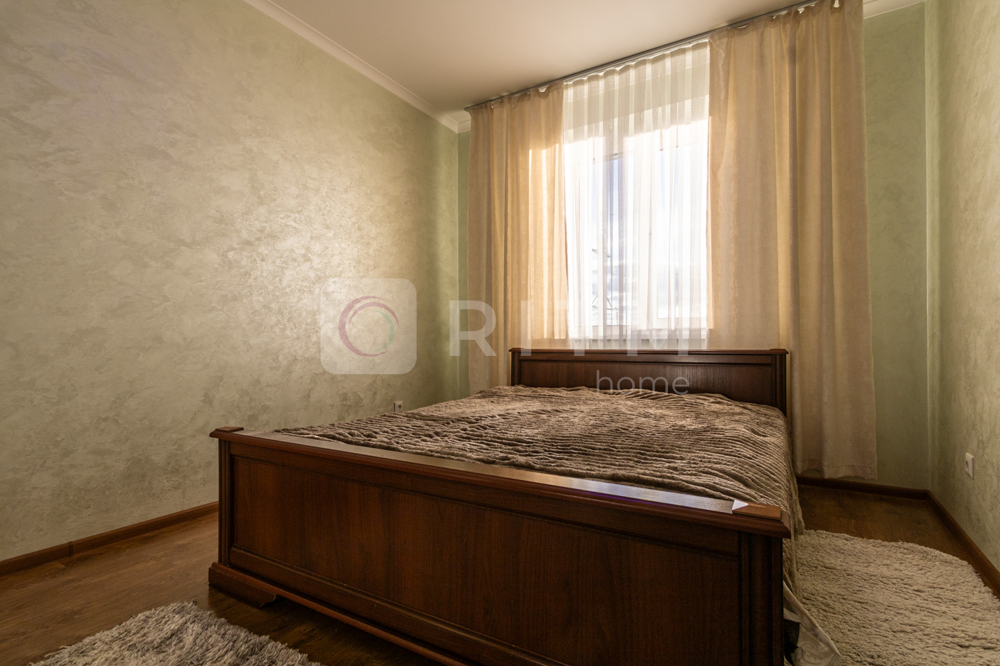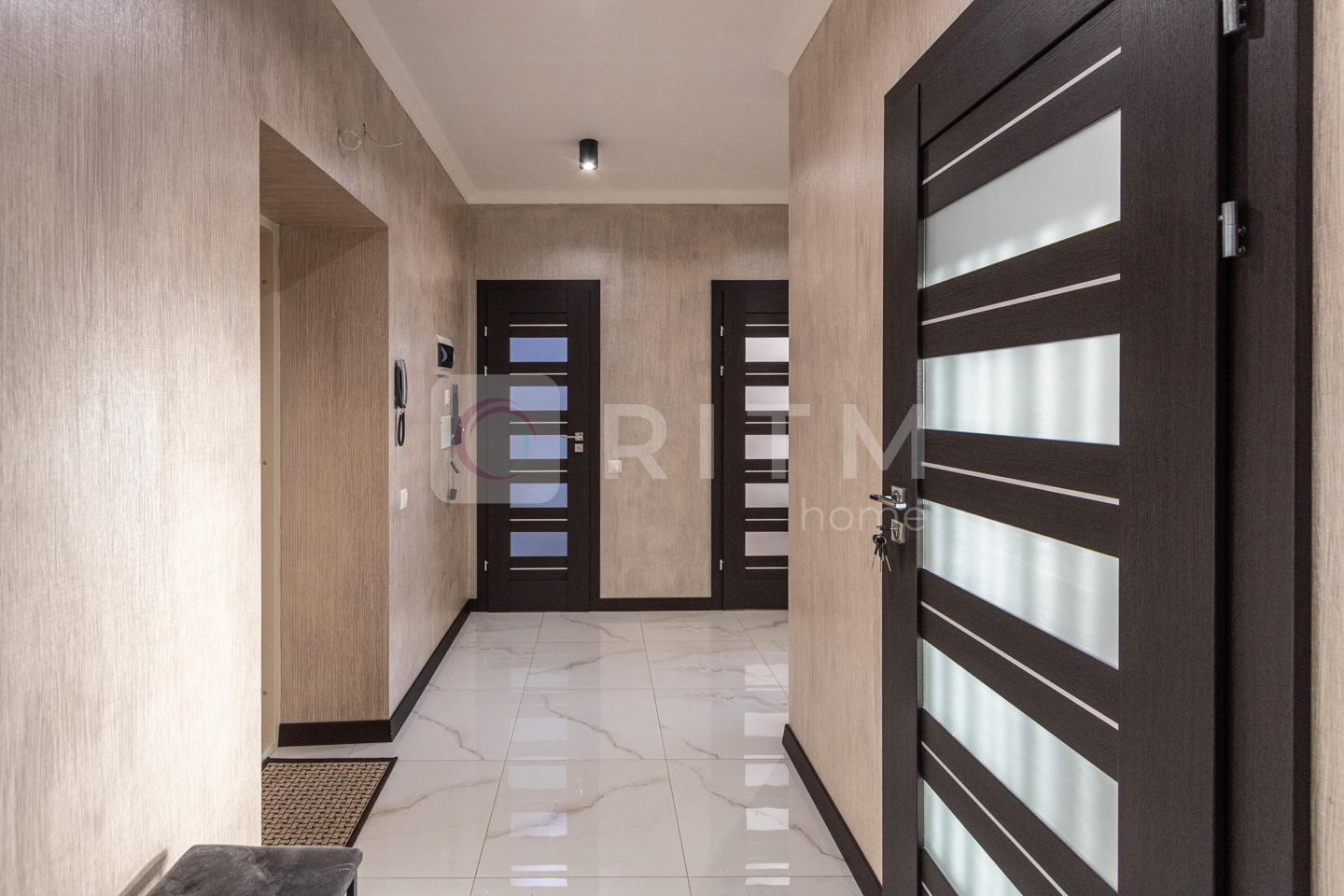 Вітальня — велика, простора та надзвичайно світла завдяки панорамним вікнам. Тут є зручний диван для приємного перегляду фільмів та велика шафа для гардеробу.