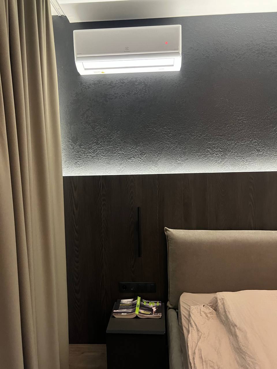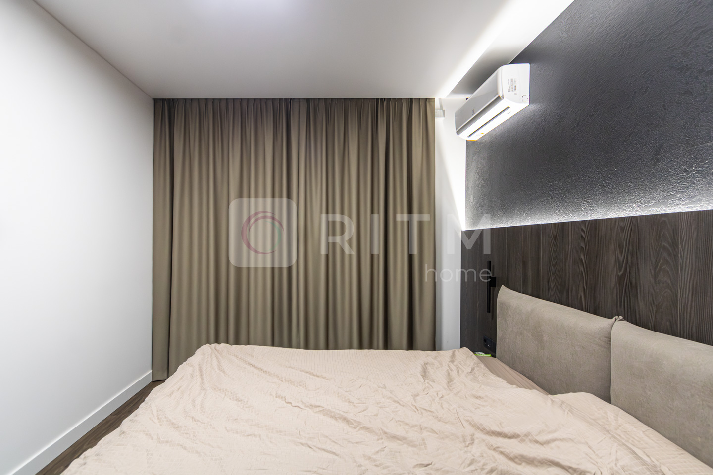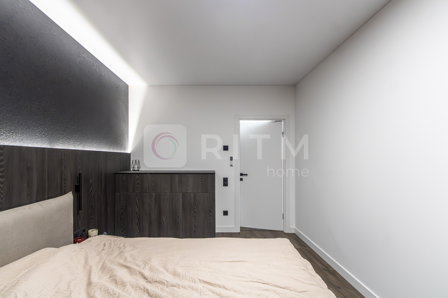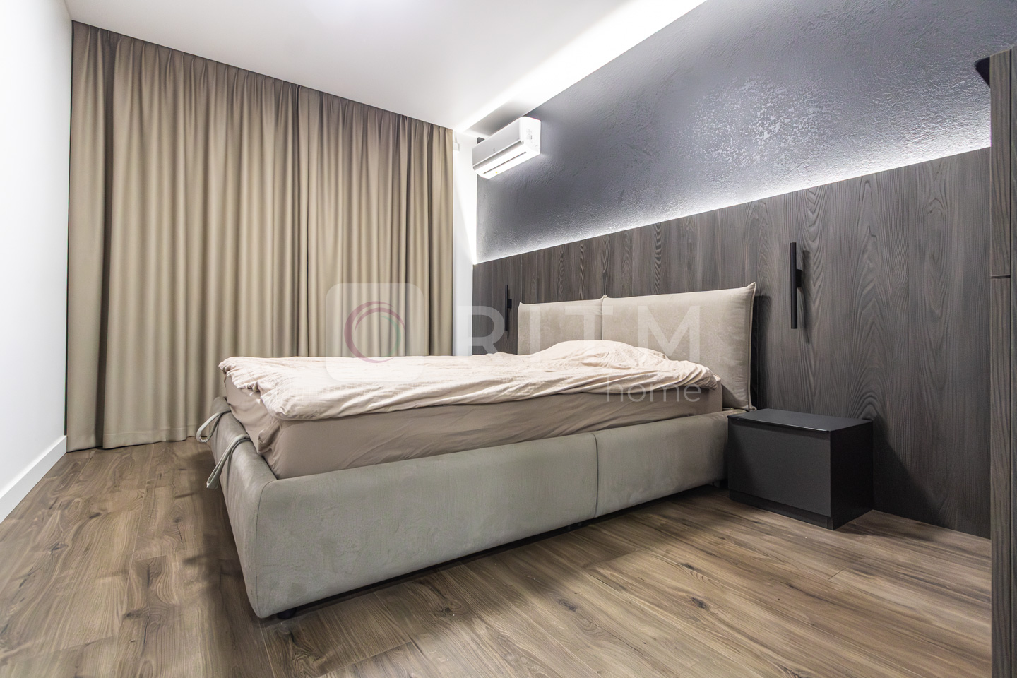 Друга кімната — велике двоспальне ліжко з ортопедичним матрацом, кондиціонер, комод, декоративна підсвітка.