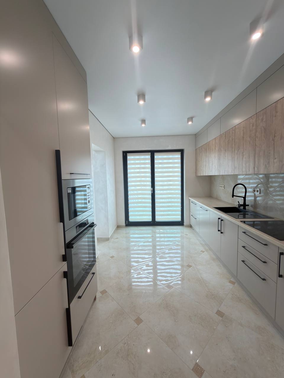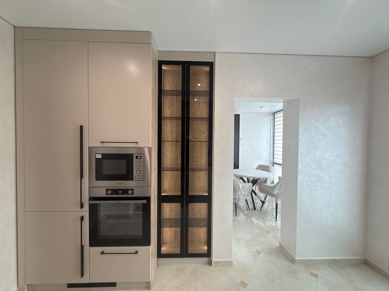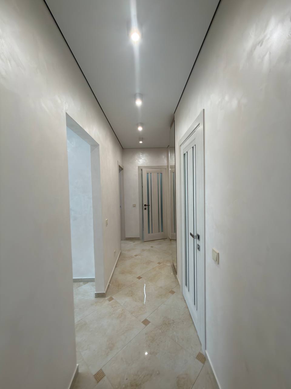 Квартира виконана з дорогих та якісних матеріалів, усе облаштовано зі смаком і увагою до деталей. Вхідна зона — великий просторий коридор із місткою шафою-купе, що дозволяє зручно організувати зберігання речей та підтримувати порядок.