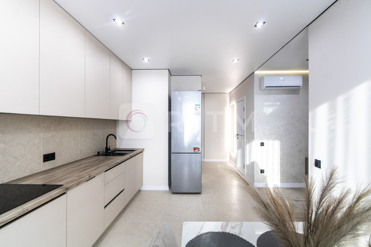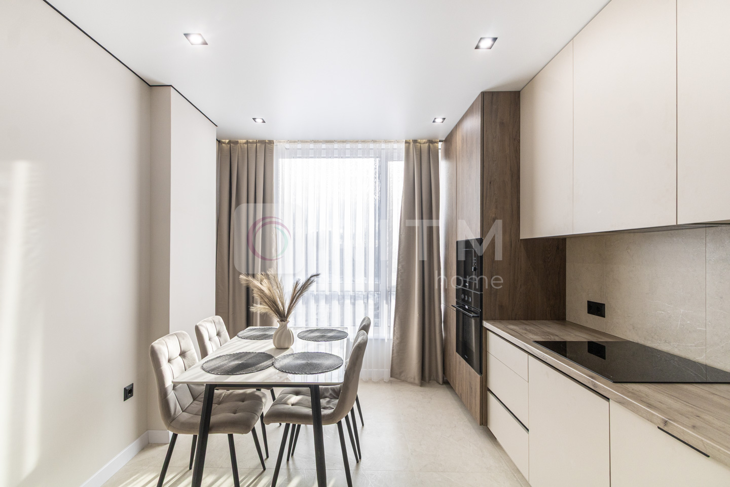 • Кухня-студія з вітальнею — простора, світла та функціональна. Обладнана повноцінною кухнею з усією необхідною побутовою технікою: холодильник, варильна поверхня, духова шафа, витяжка, мікрохвильова піч, посудомийна машина.