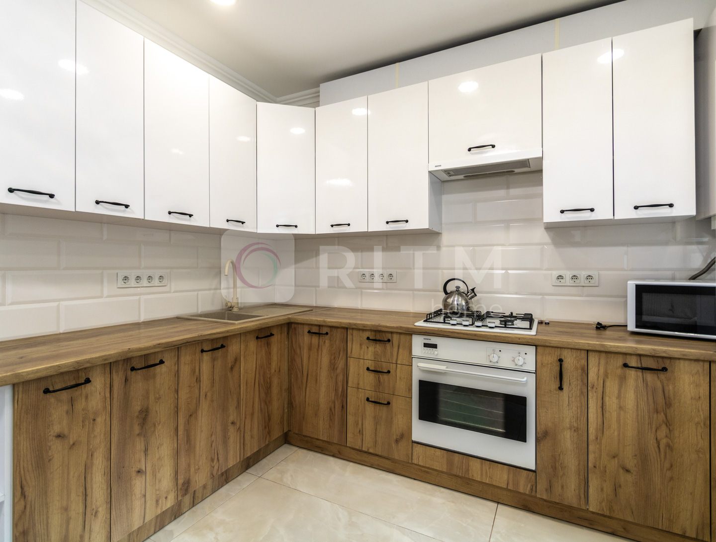 • Повний набір побутової техніки: варильна поверхня, духова шафа, холодильник, витяжка, мікрохвильова піч, електрочайник.