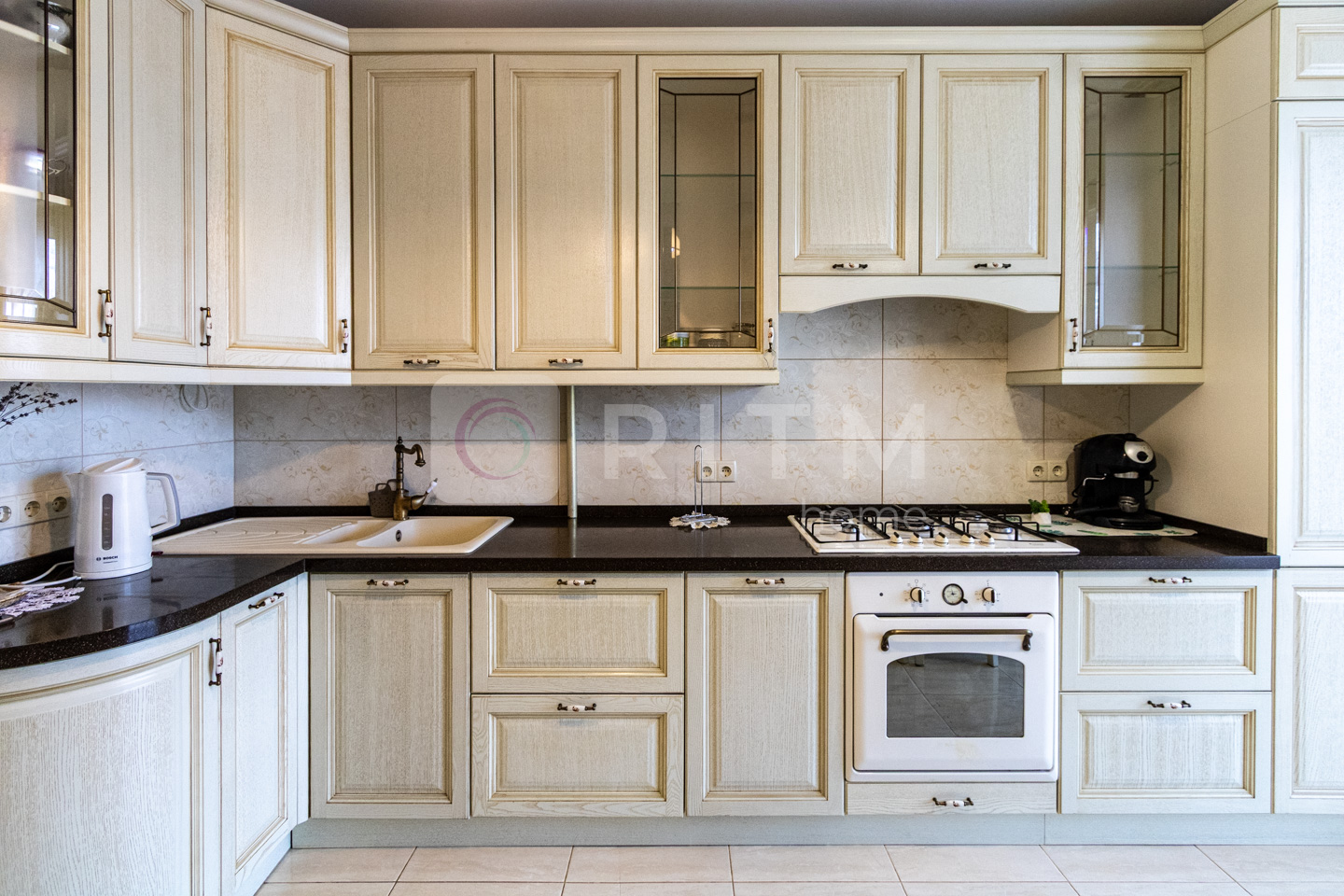 Кухня продумана до найменших деталей: є посудомийна машина, великий холодильник та окрема морозильна камера — усе необхідне для зручного сімейного побуту.