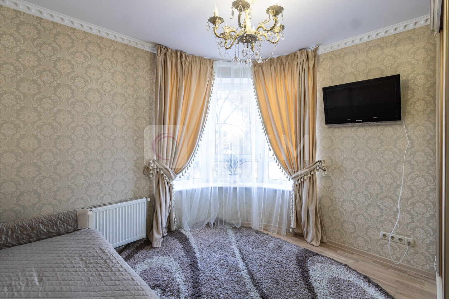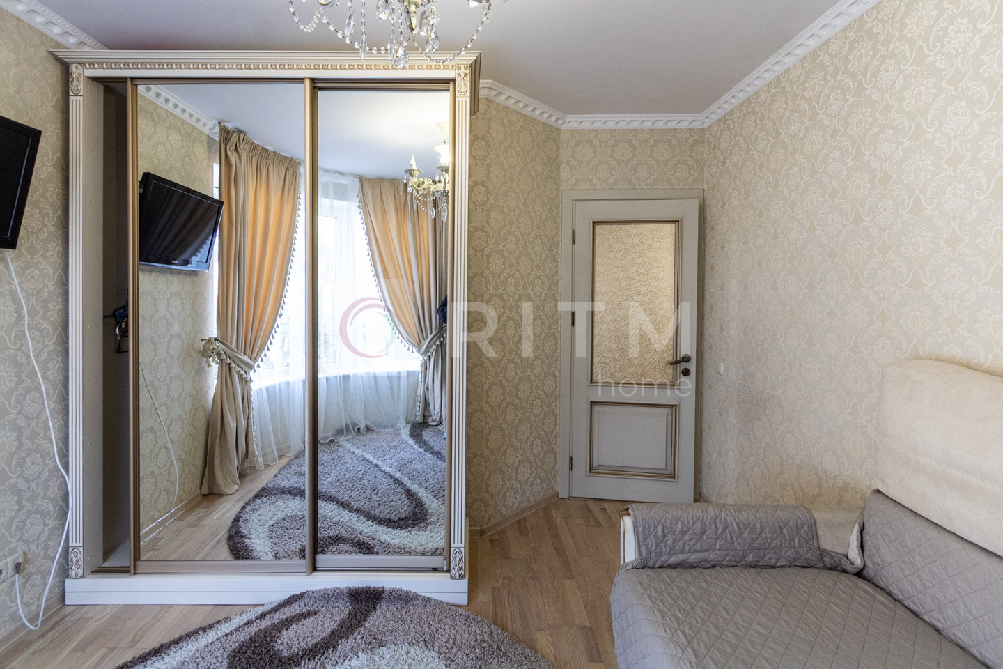 • Третя кімната облаштована двоспальним ліжком, великою шафою та виходом на велику лоджію, де можна облаштувати зону відпочинку або робочий куточок.