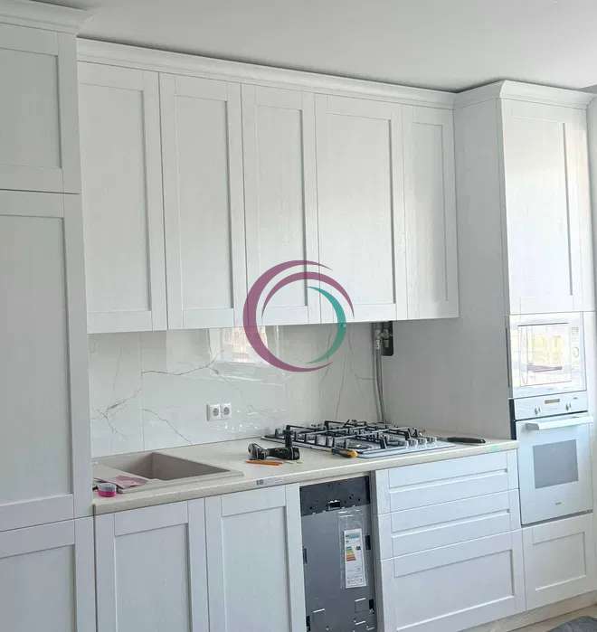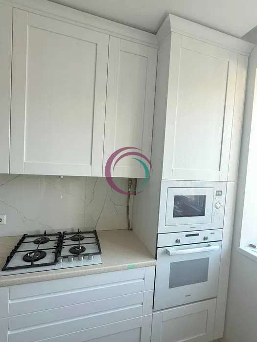 Кухня повністю укомплектована всією необхідною технікою для зручного щоденного користування: встановлена посудомийна машина, холодильник, мікрохвильова піч, духовка, пральна машинка, а також кондиціонер, що забезпечує комфорт у будь-яку пору року. Простір кухні доповнює зручний диван, який створює приємну зону для відпочинку чи дружніх посиденьок.