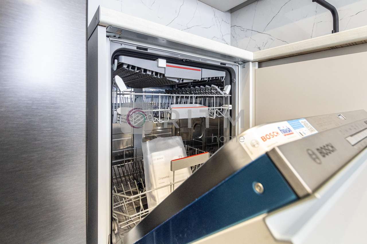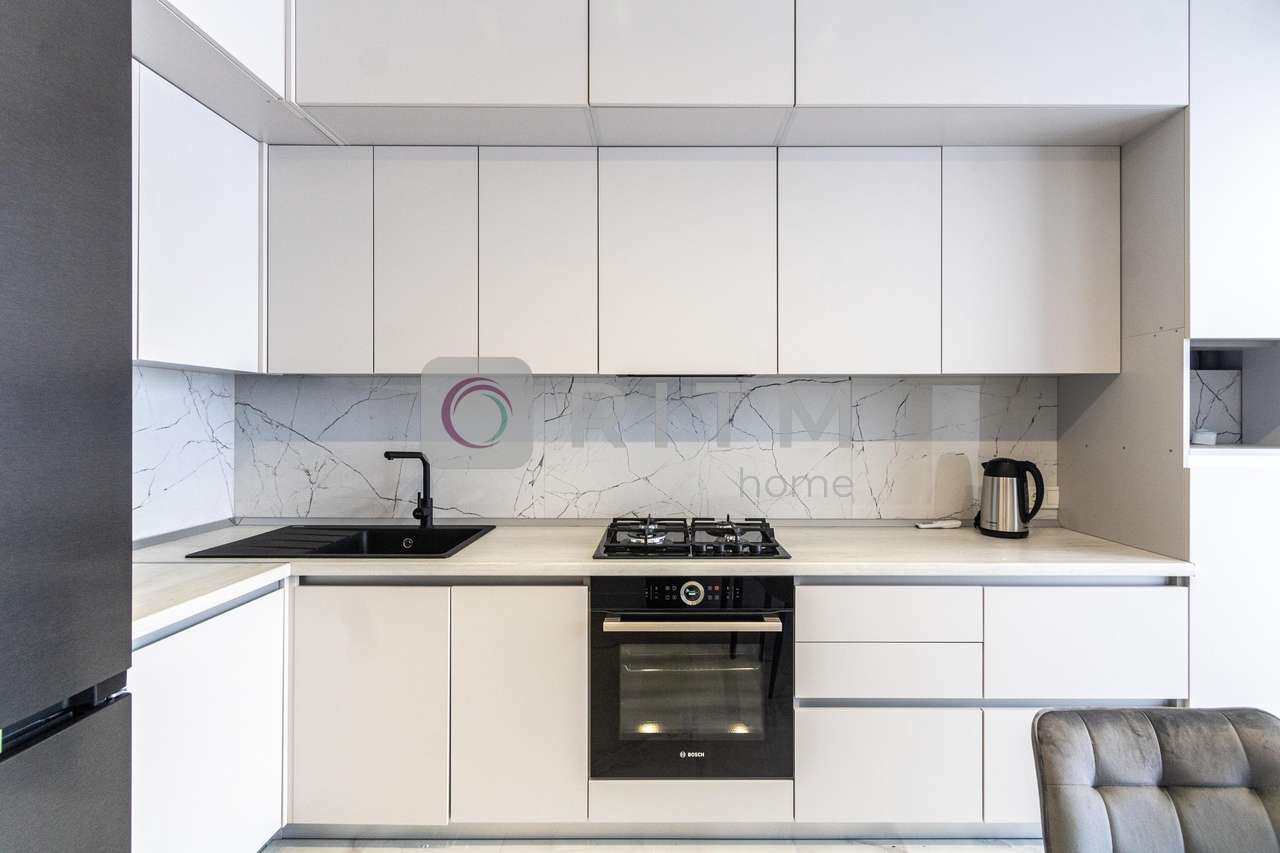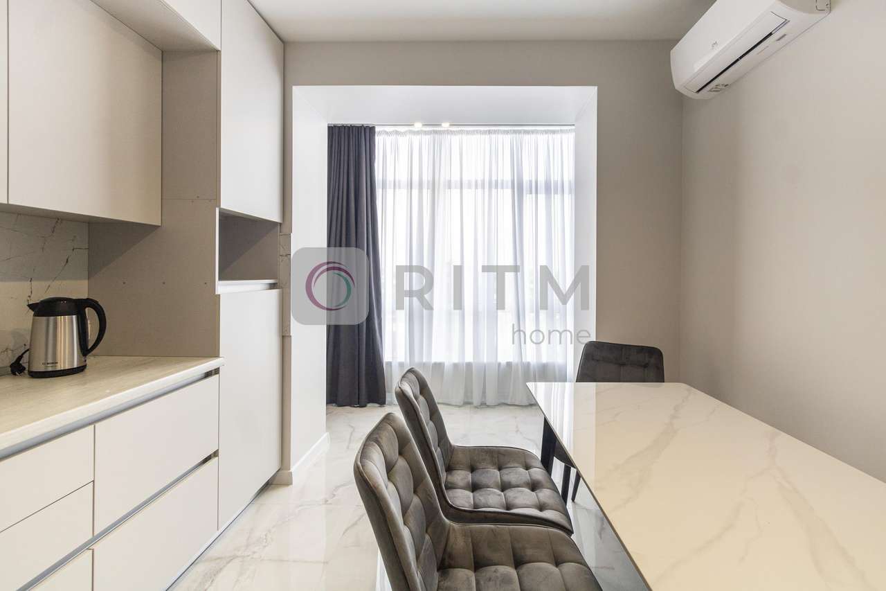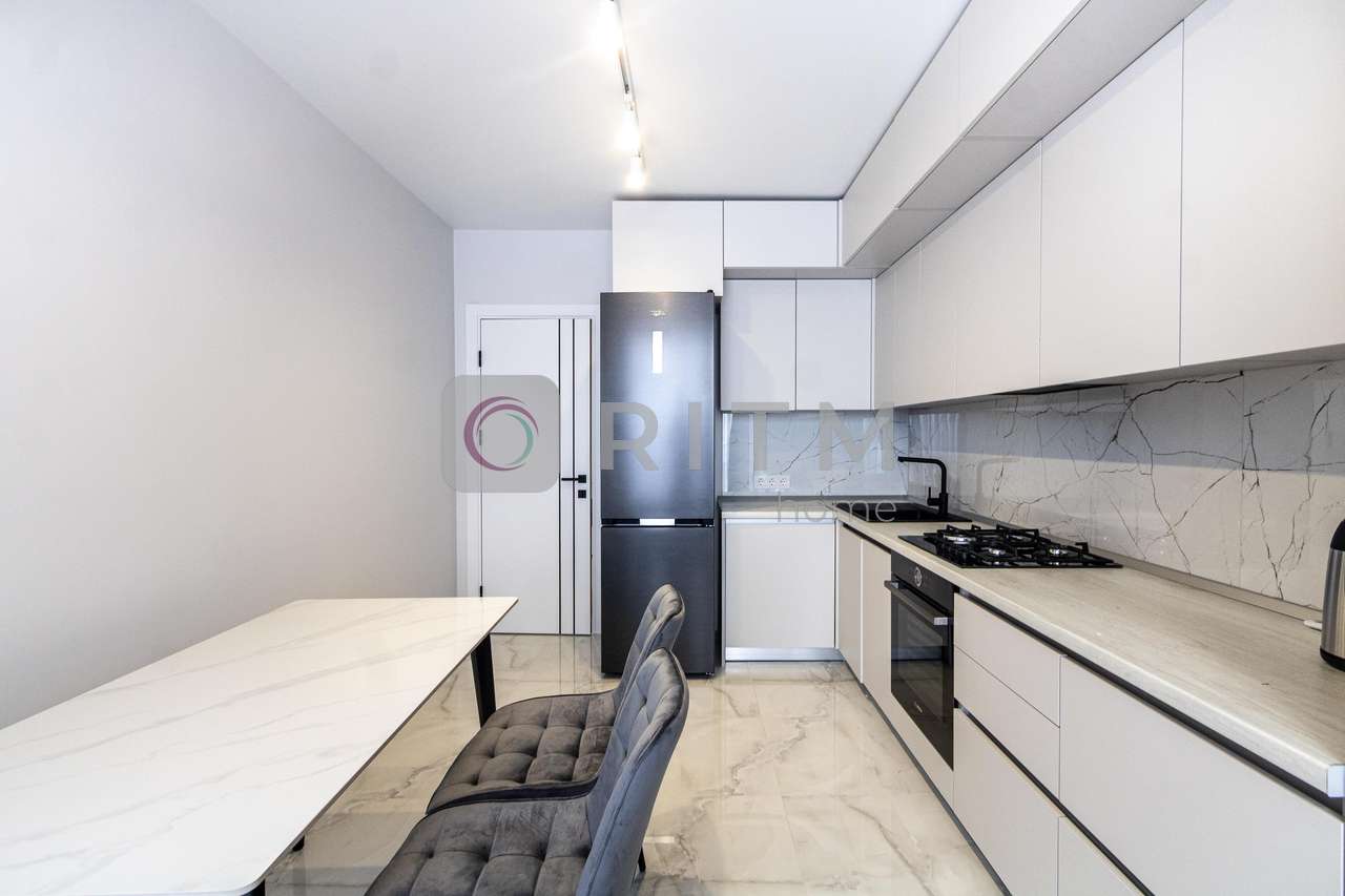 Квартира має зручне планування та велику кухню, яка стане улюбленим місцем для сімейних вечерь або зустрічей з друзями. Кухня повністю укомплектована технікою, зокрема є посудомийна машина, що значно економить ваш час та додає комфорту у повсякденному житті.