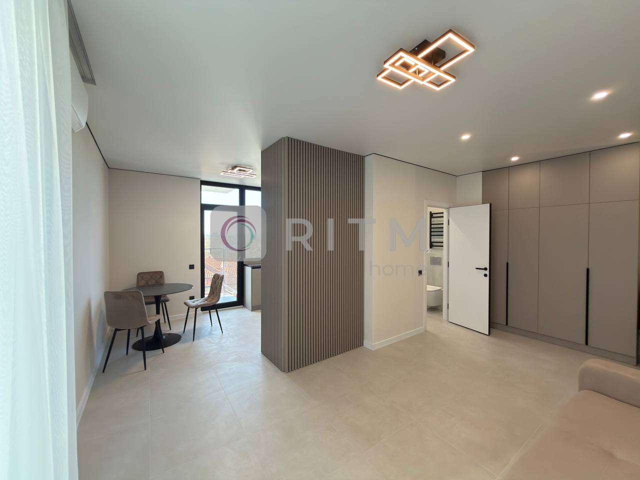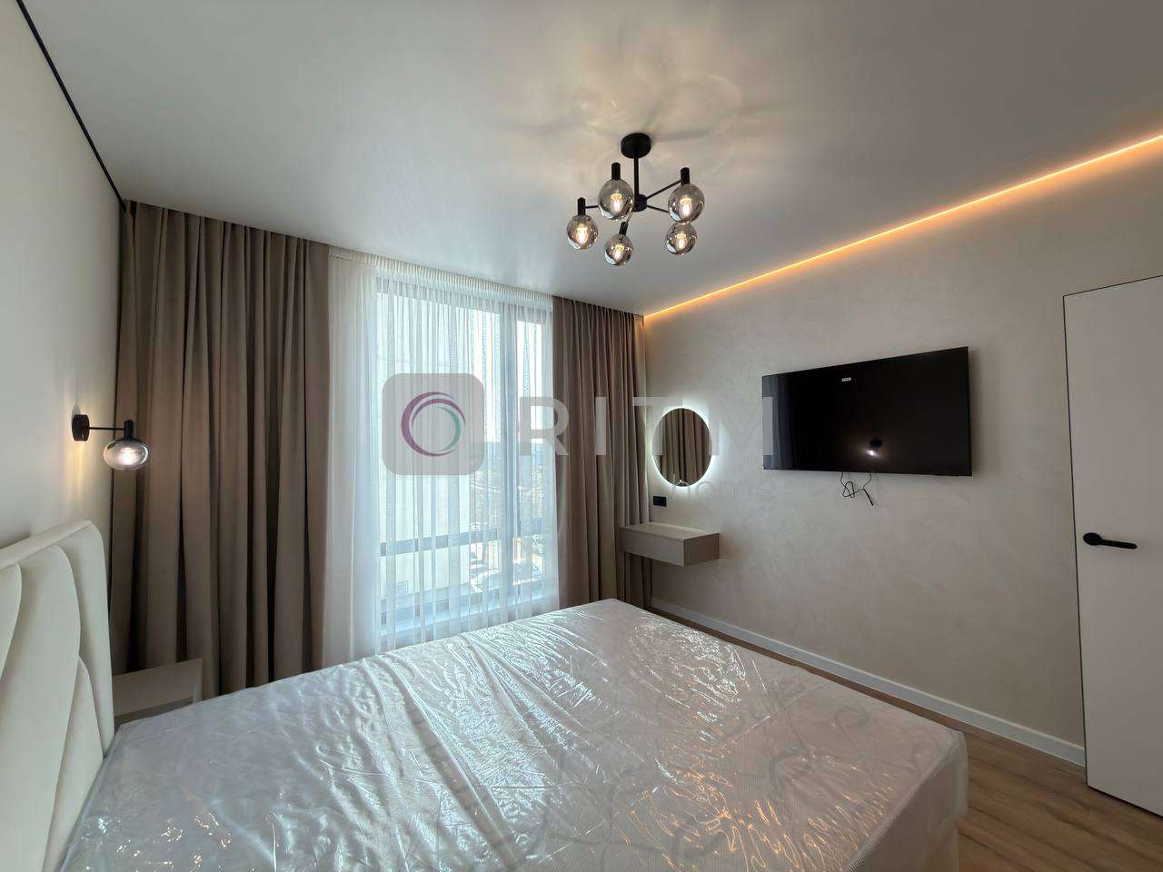 Квартира дуже світла, простора та продумана до дрібниць. У спальні облаштовано зручне двоспальне ліжко, телевізор та окрему бʼюті-зону, де зручно облаштувати місце для догляду за собою. Також є велика гардеробна кімната з підсвіткою, що дозволяє зручно організувати зберігання одягу та особистих речей.