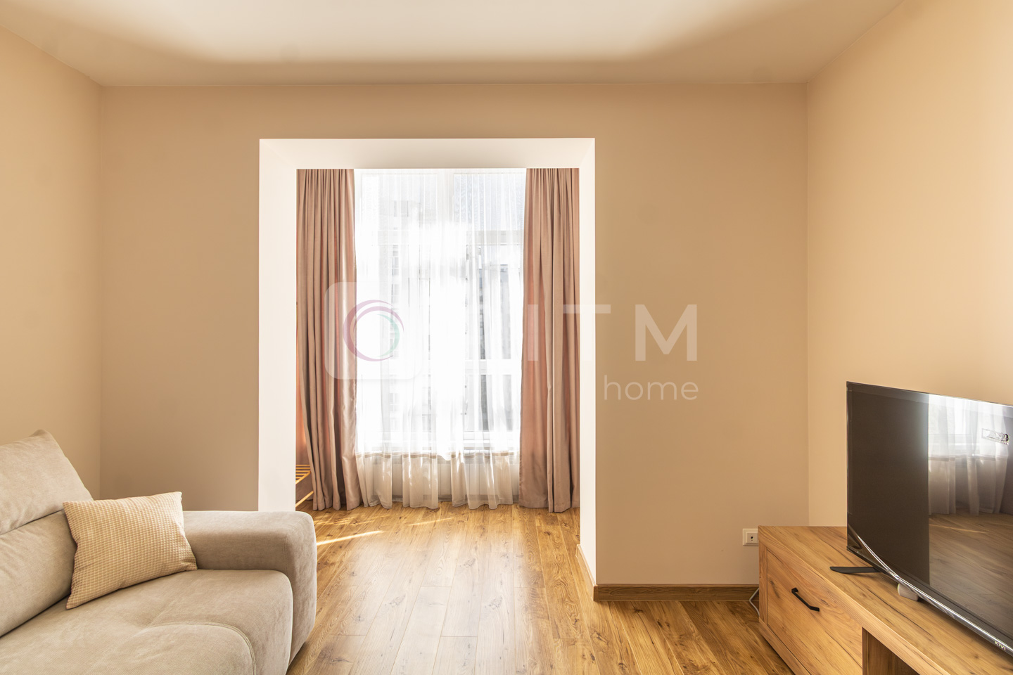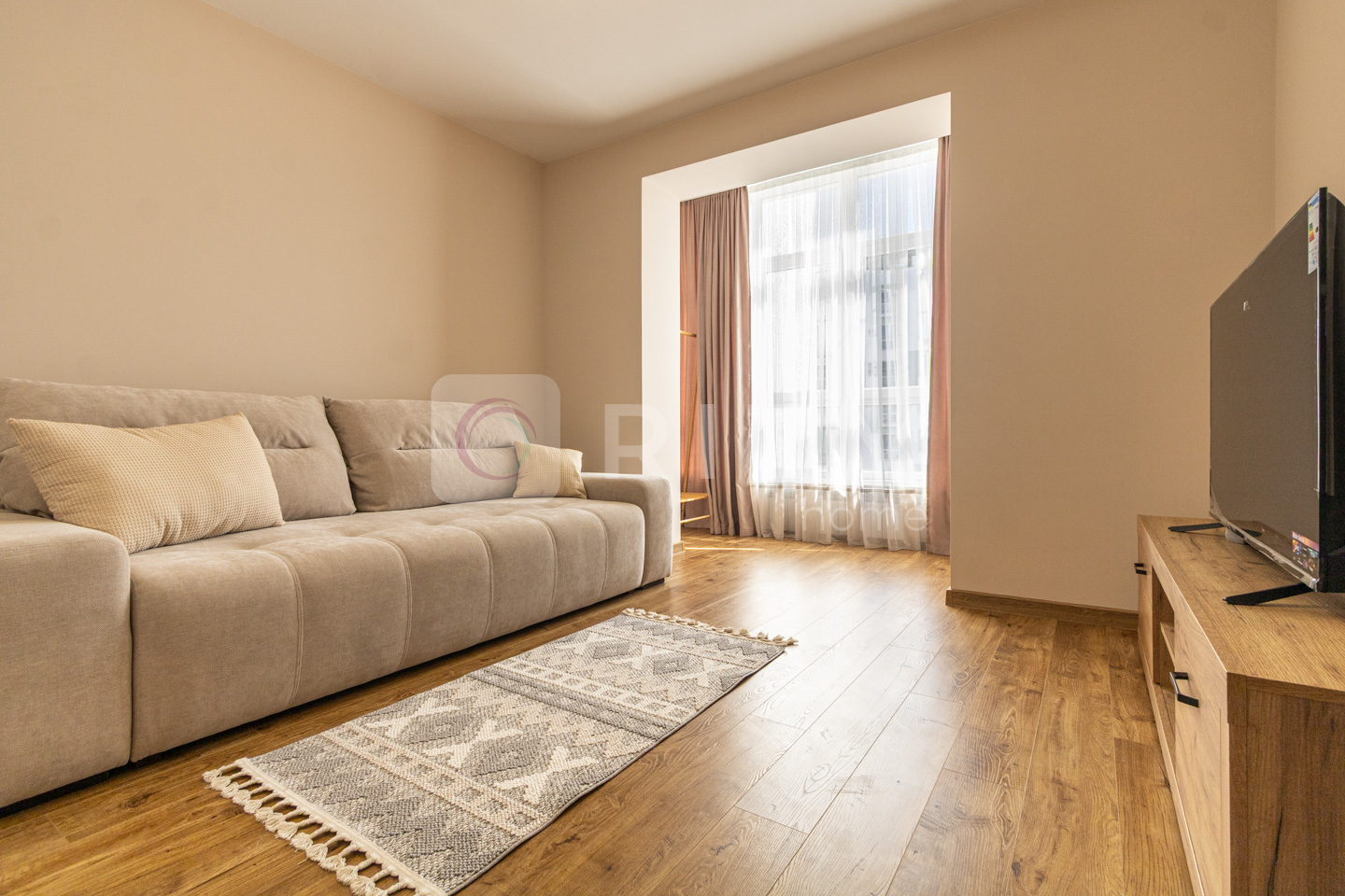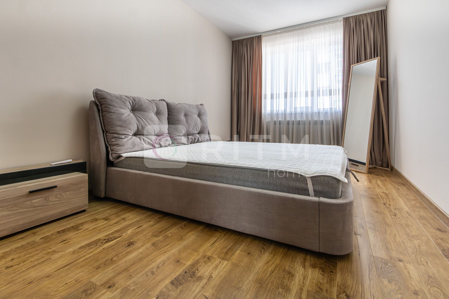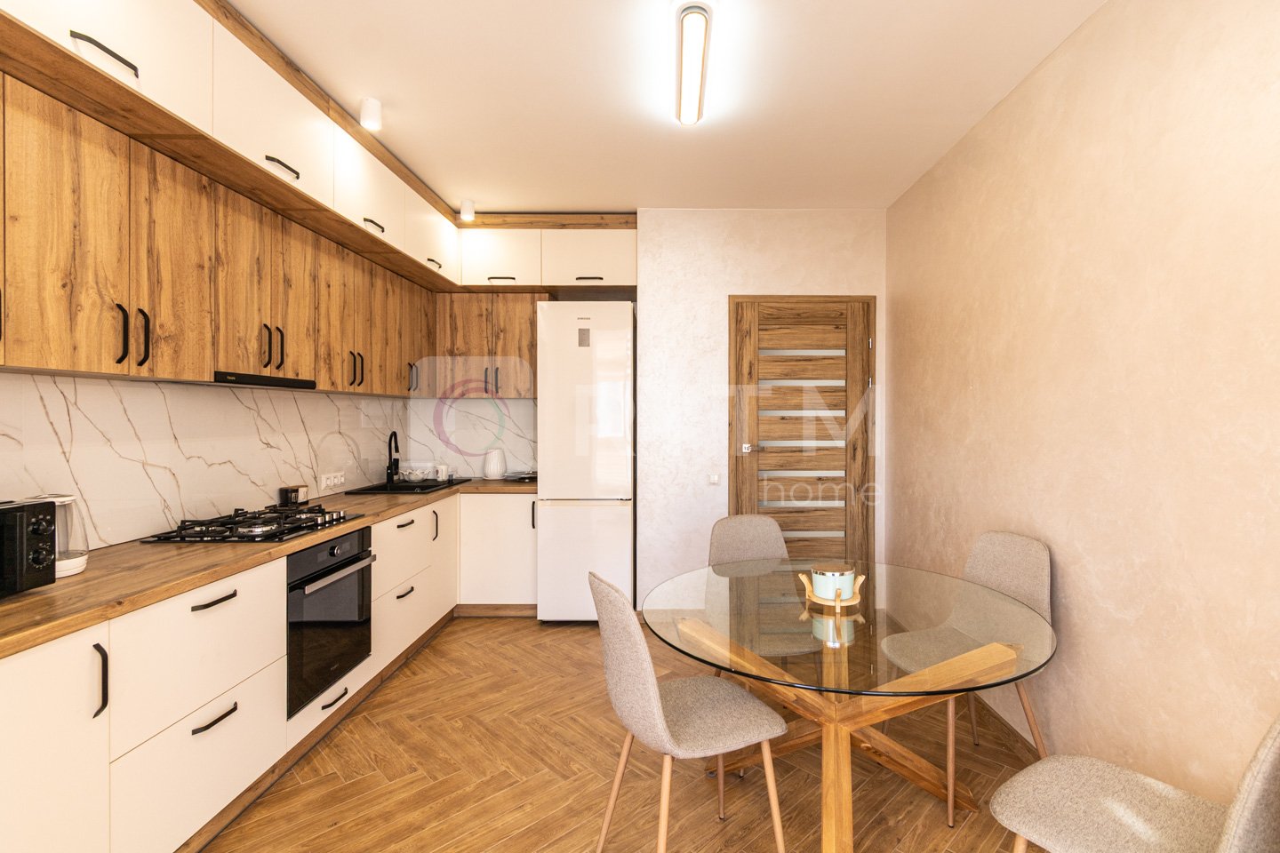 Планування дуже зручне: окрема спальня з великим двоспальним ліжком, світла вітальня з комфортним диваном та велика кухня-студія з обідньою зоною.