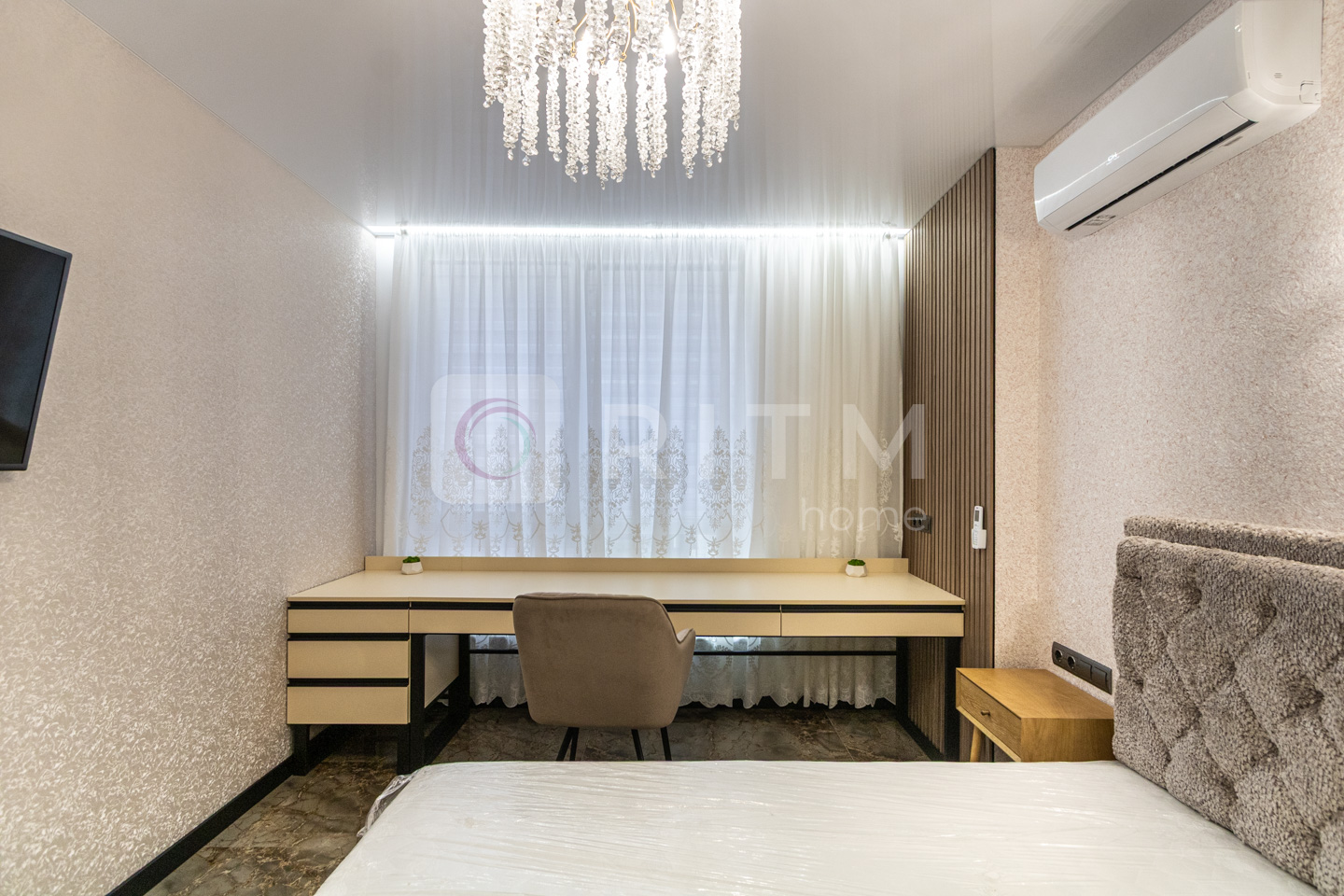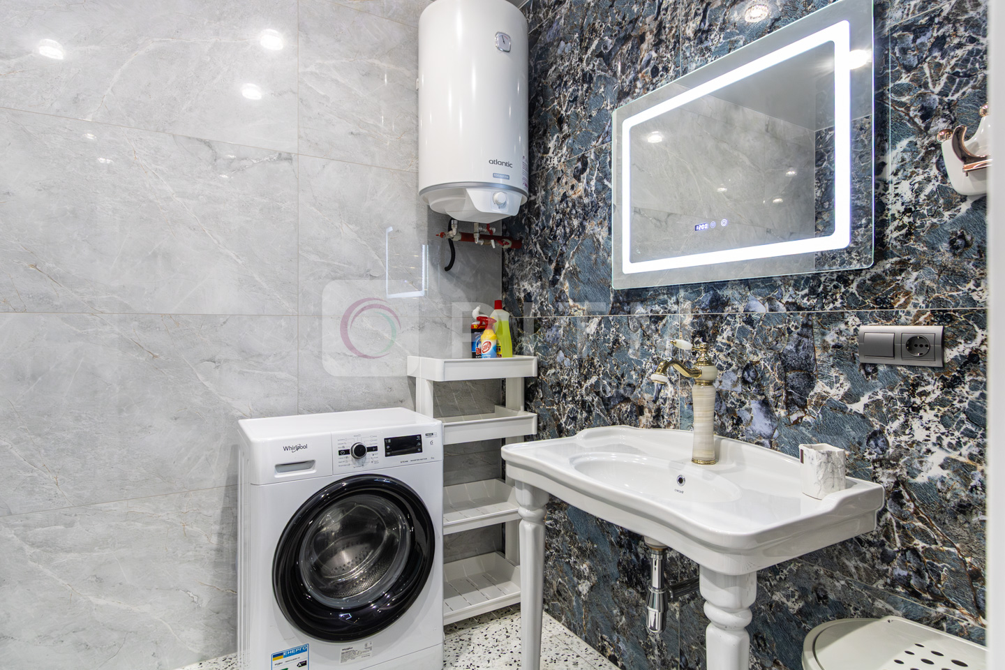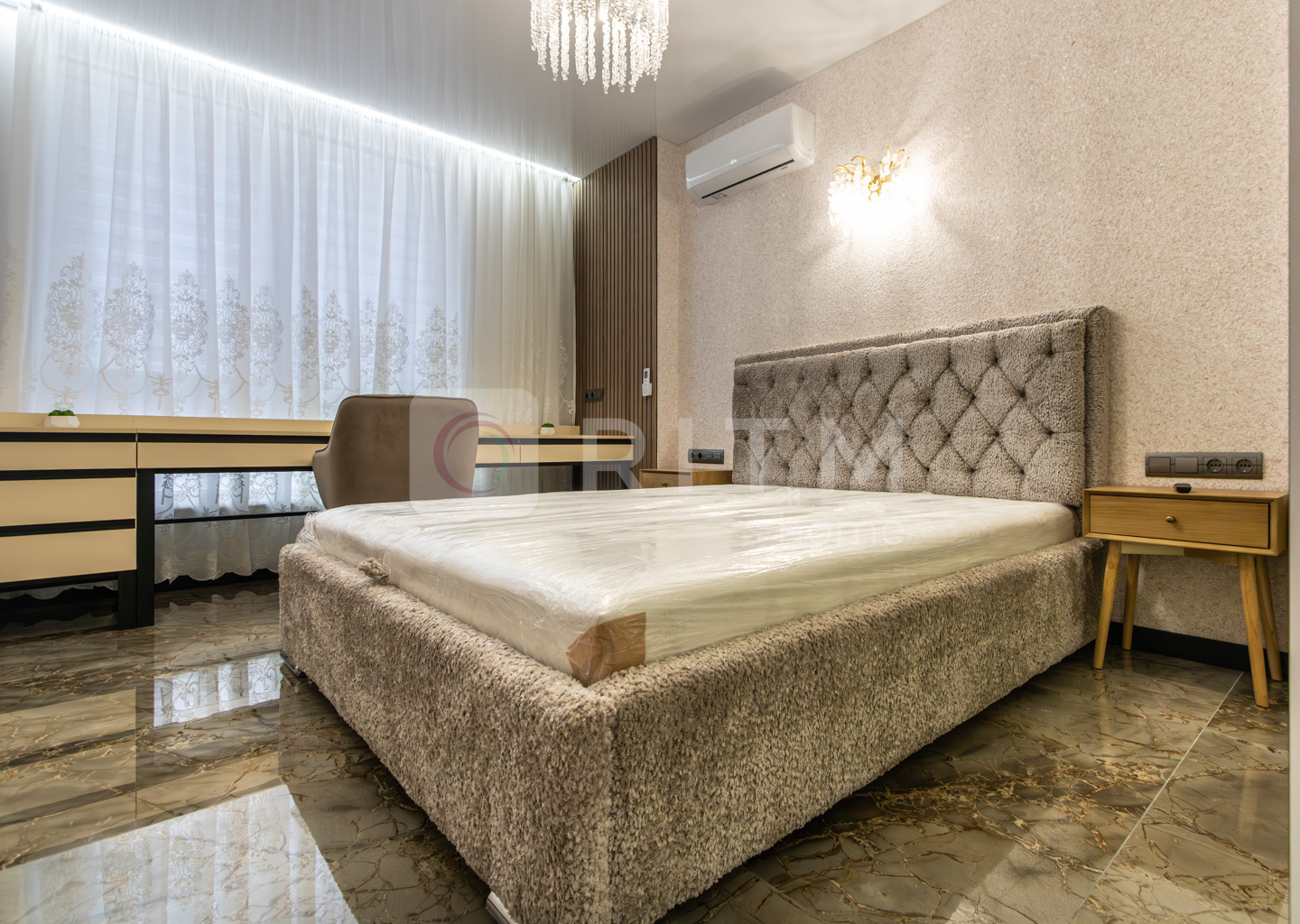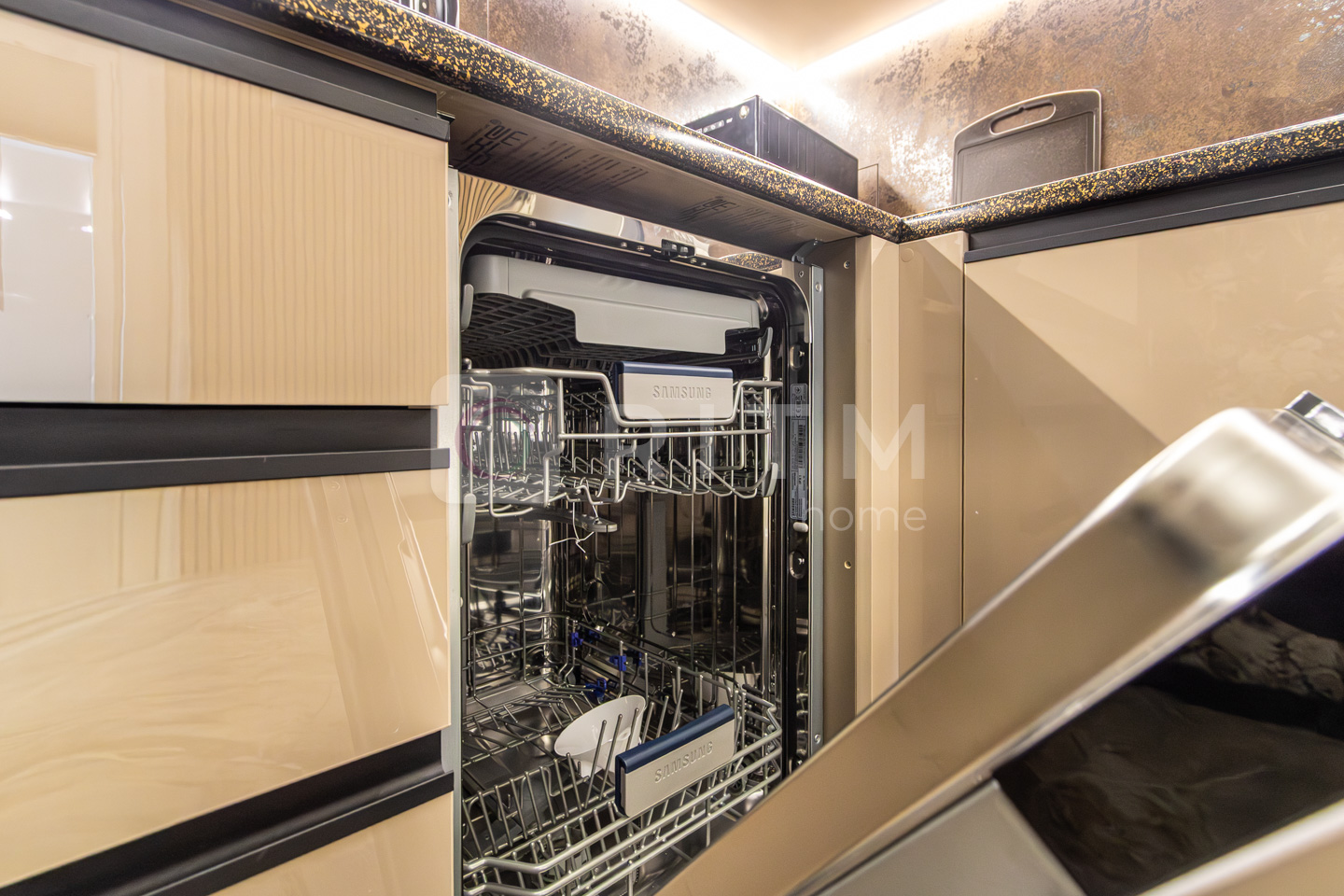 У квартирі є вся необхідна техніка для комфортного життя: холодильник, пральна машина, варильна поверхня, духова шафа, кондиціонер та інша побутова техніка. Встановлені сучасні меблі, багато місця для зберігання.