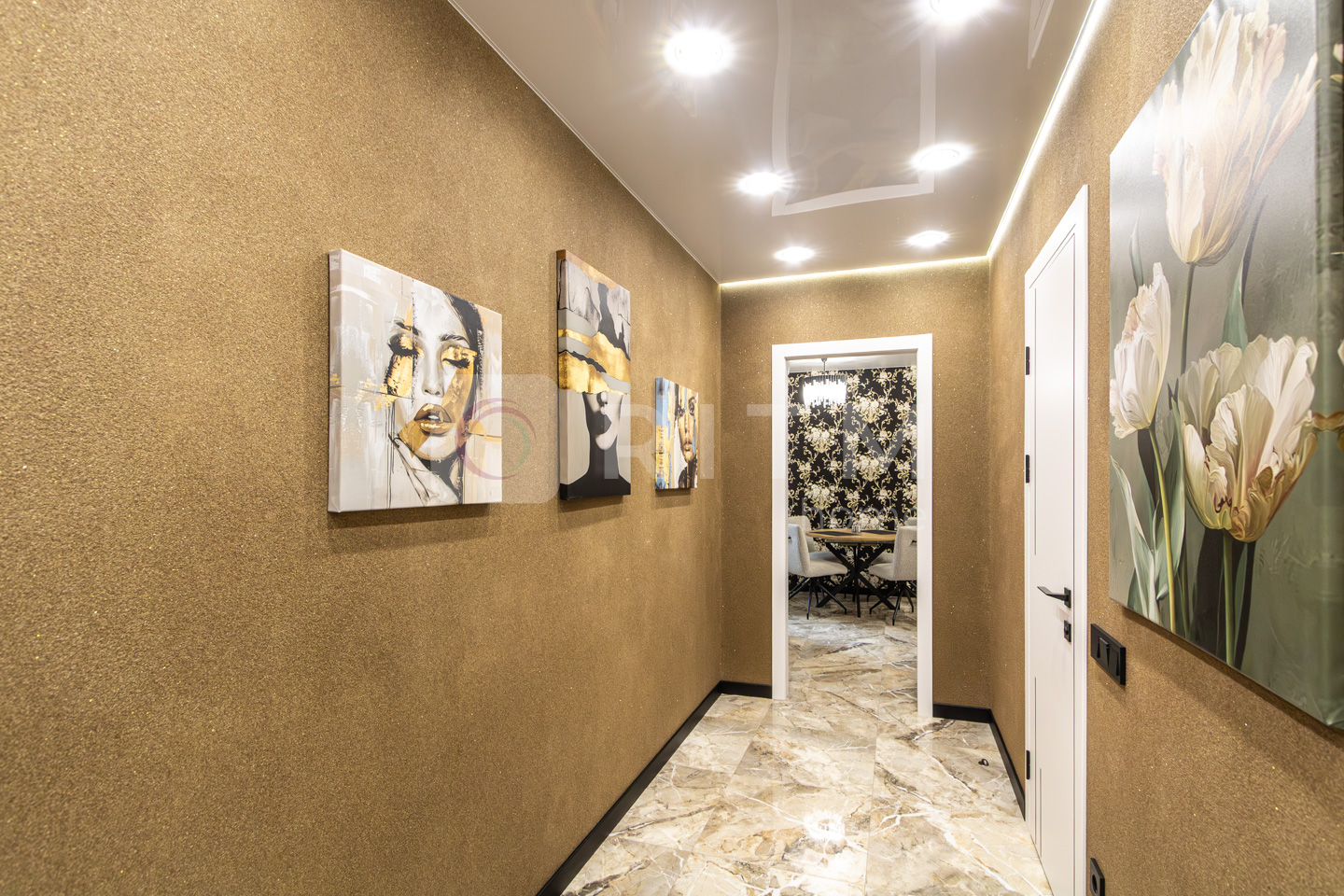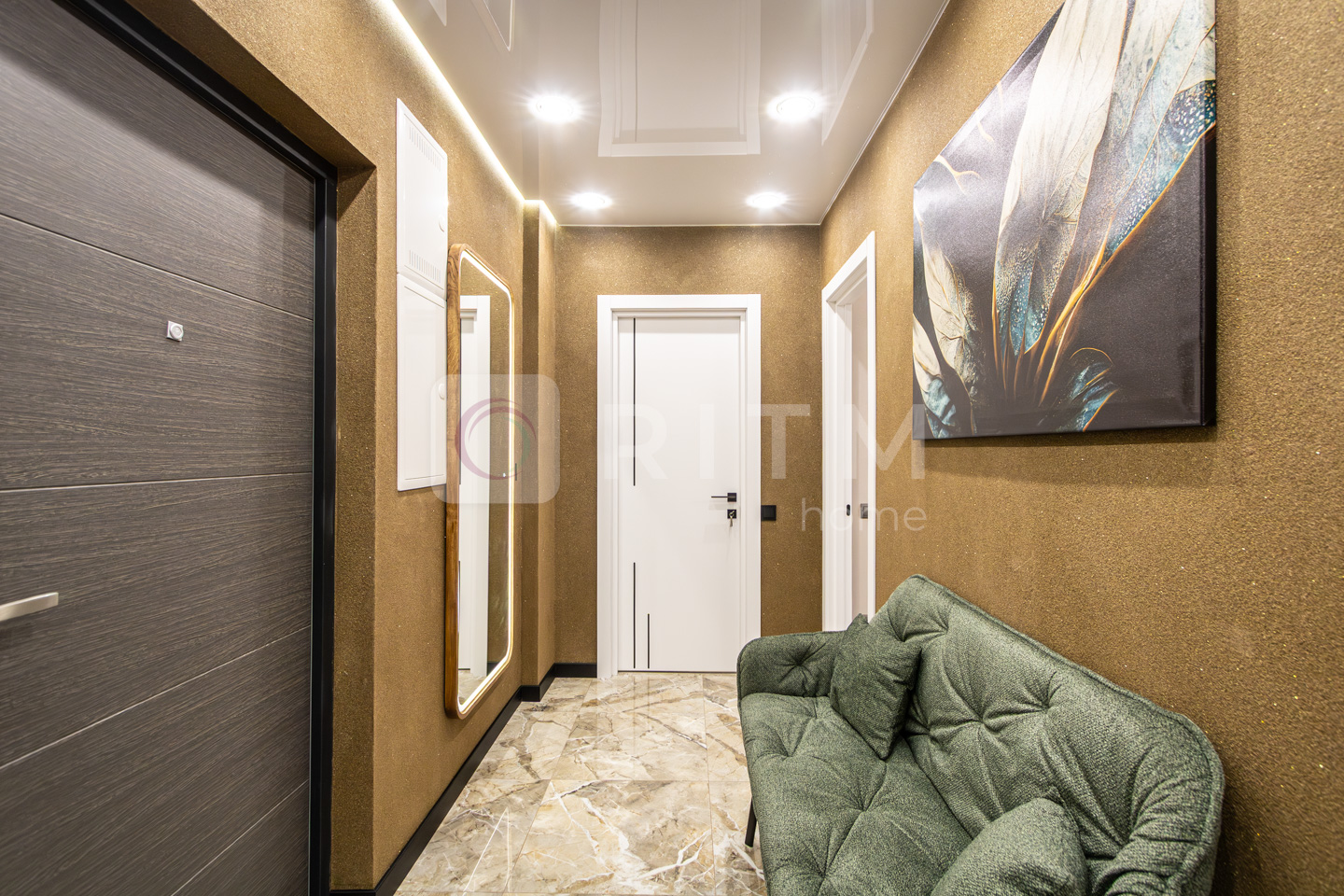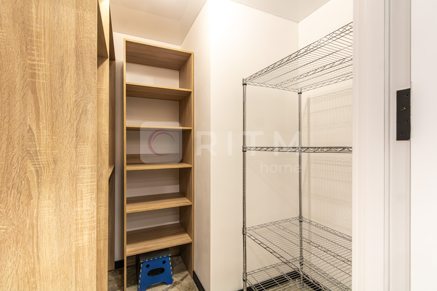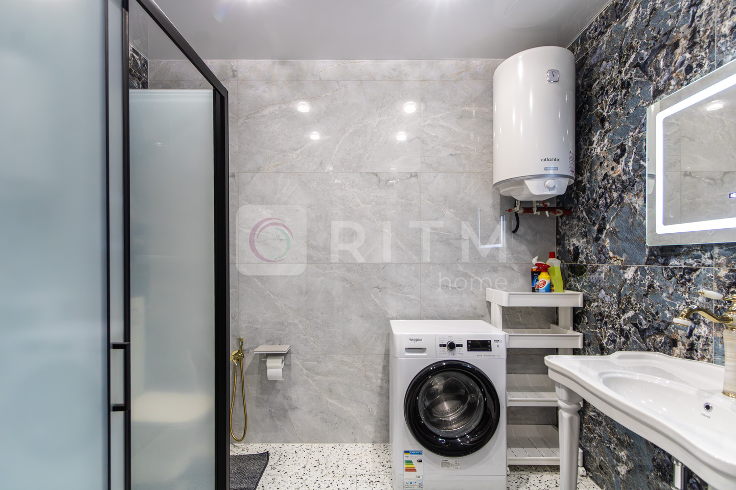У квартирі є вся необхідна техніка для комфортного життя: холодильник, пральна машина, варильна поверхня, духова шафа, кондиціонер та інша побутова техніка. Встановлені сучасні меблі, багато місця для зберігання.